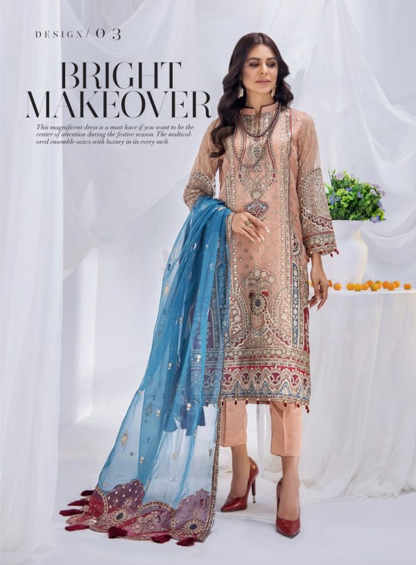 1-Embroidered Ready To Wear Organza Shirts 1 PC IS