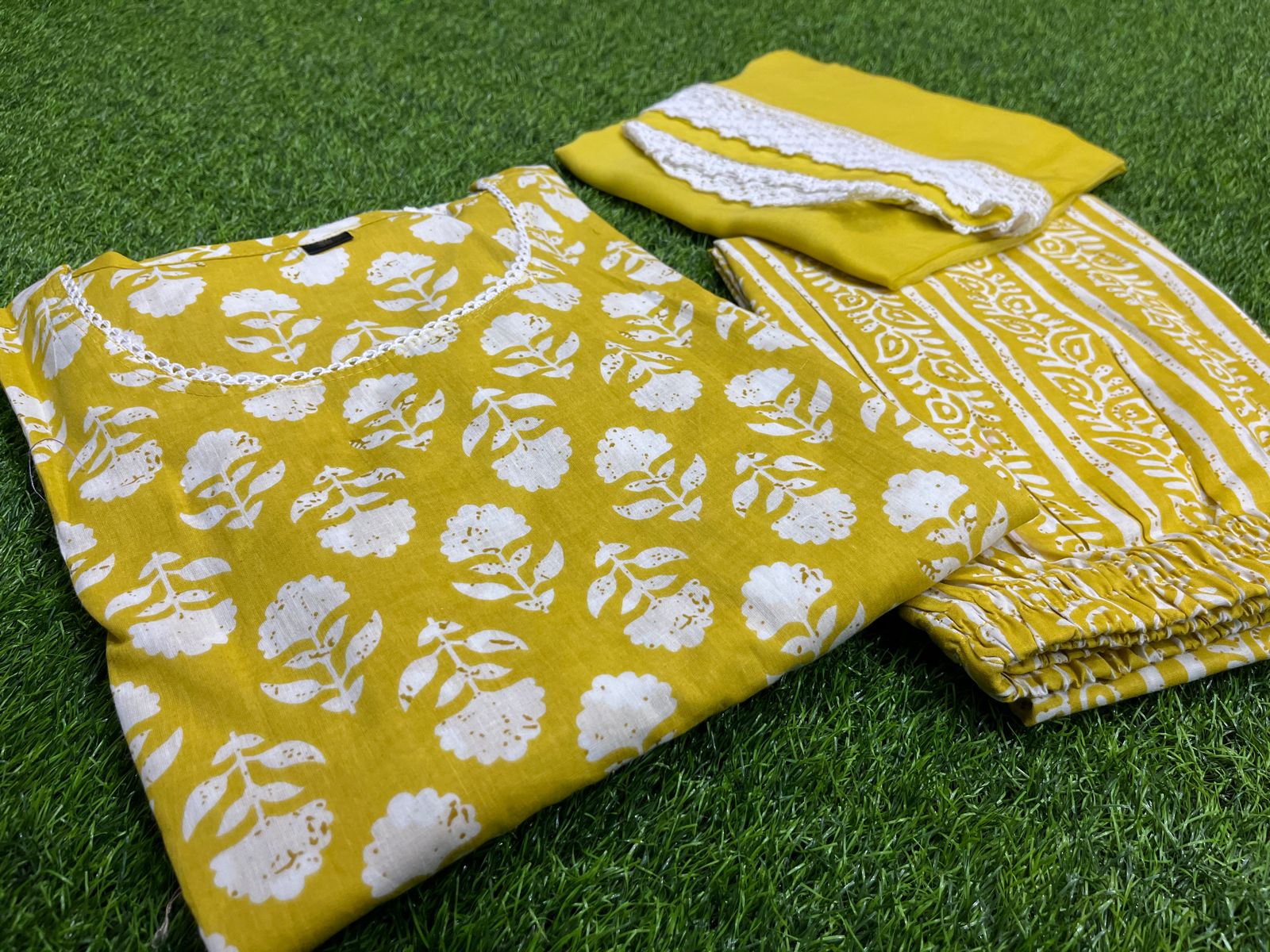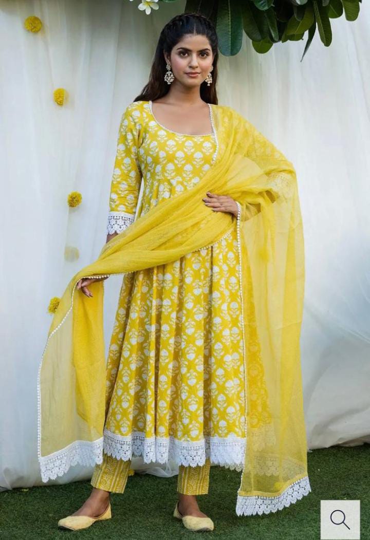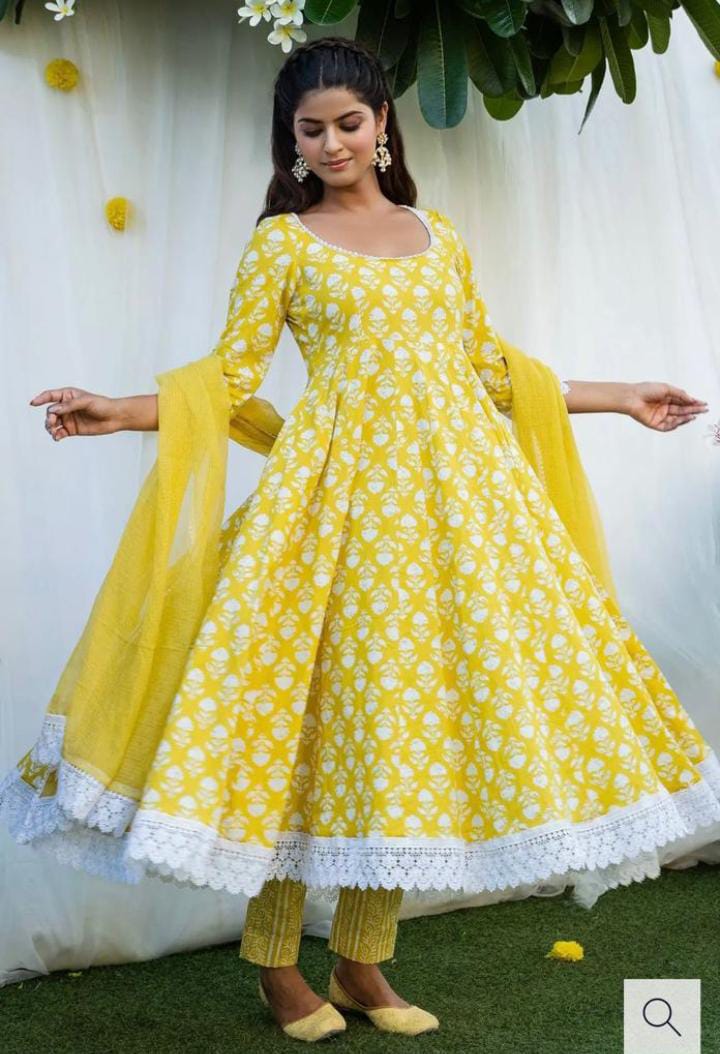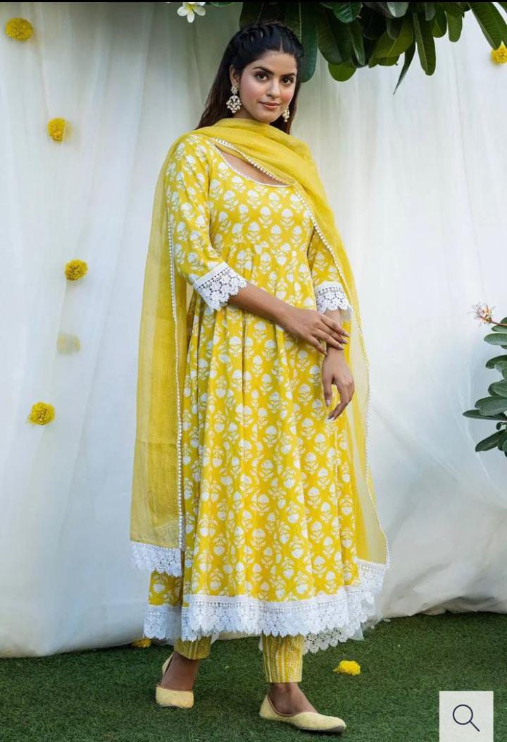printed anarkali style Kurta, pant and dupatta set with beautiful 😍 lace work..