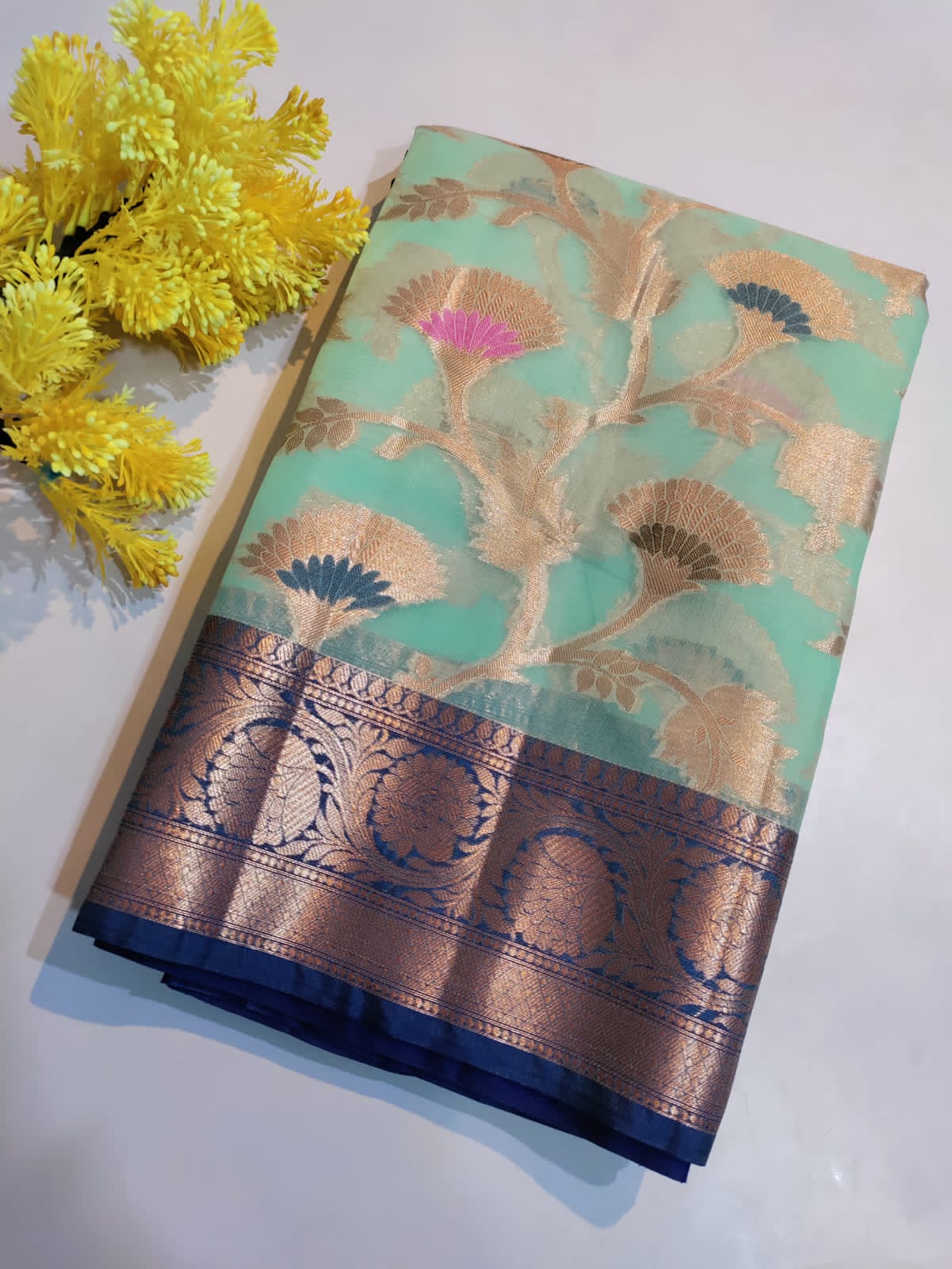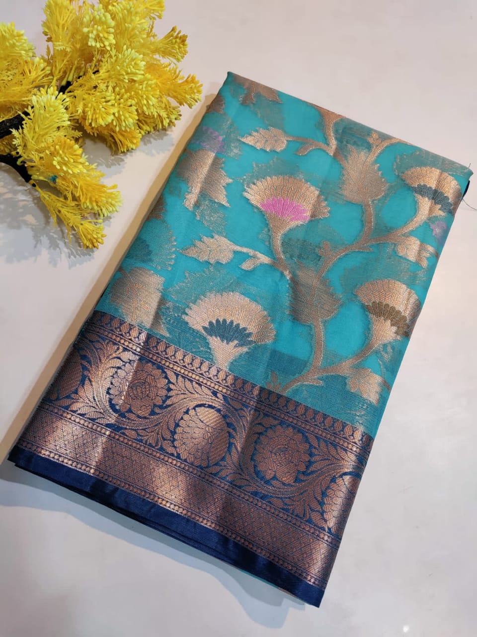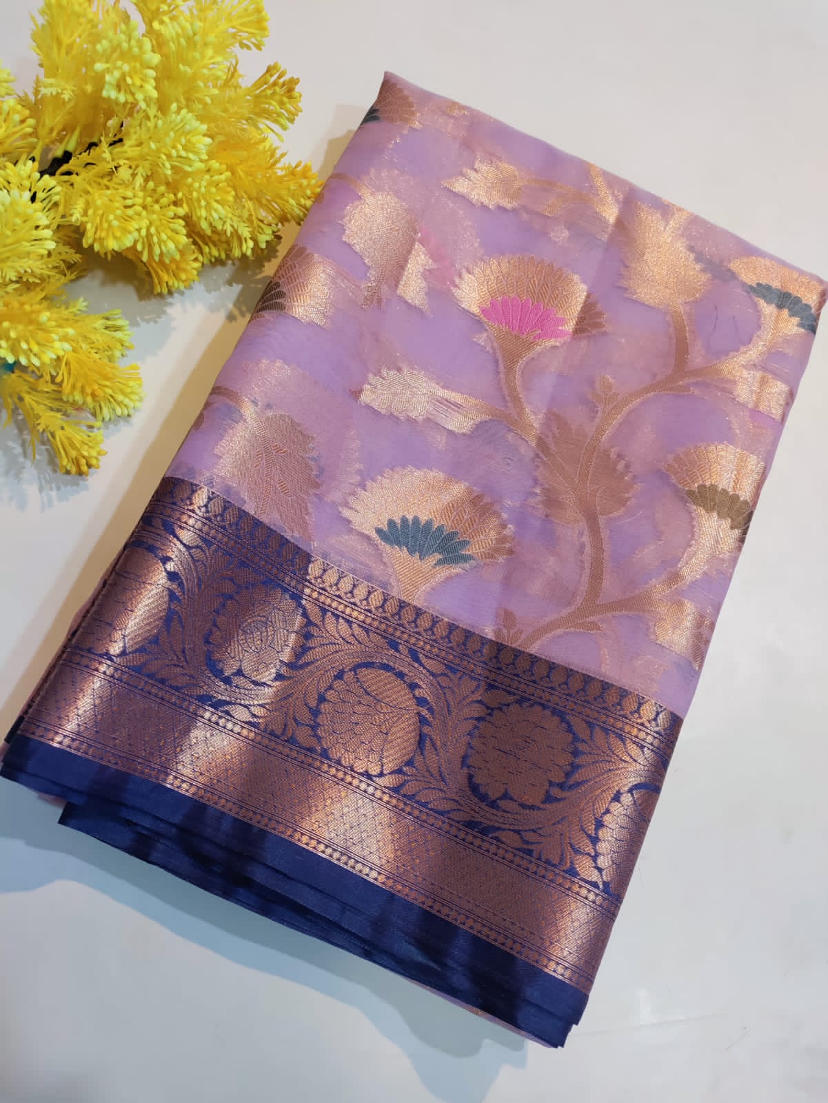 Banarasi soft copper zari meenakari jaal saree with brocade blouse