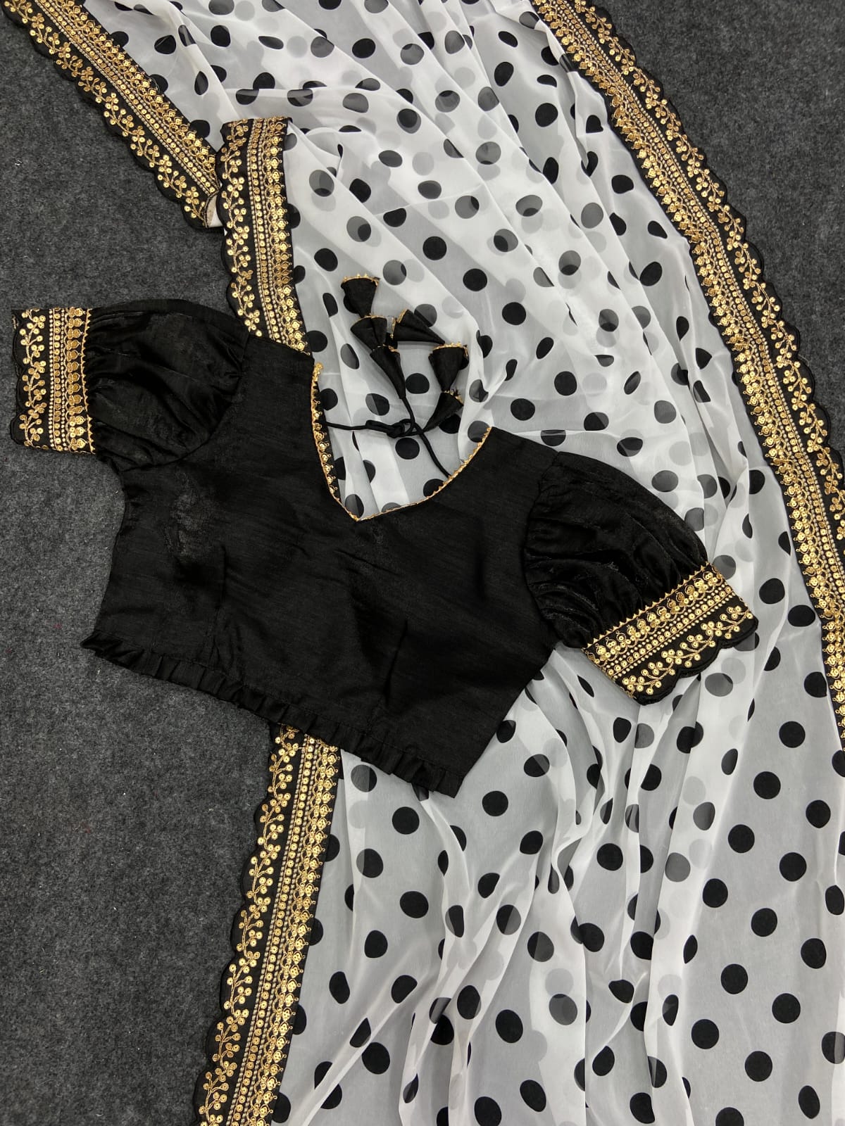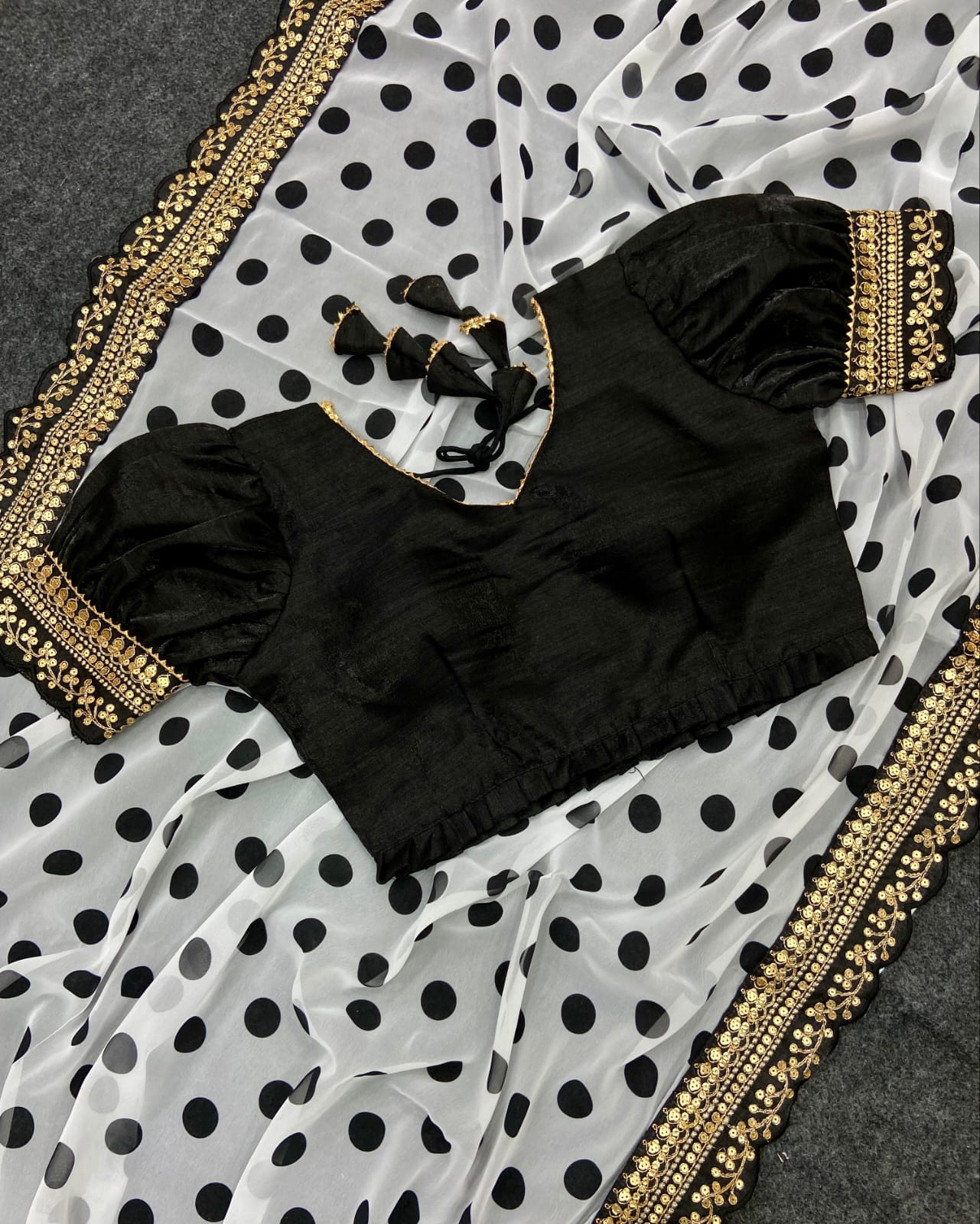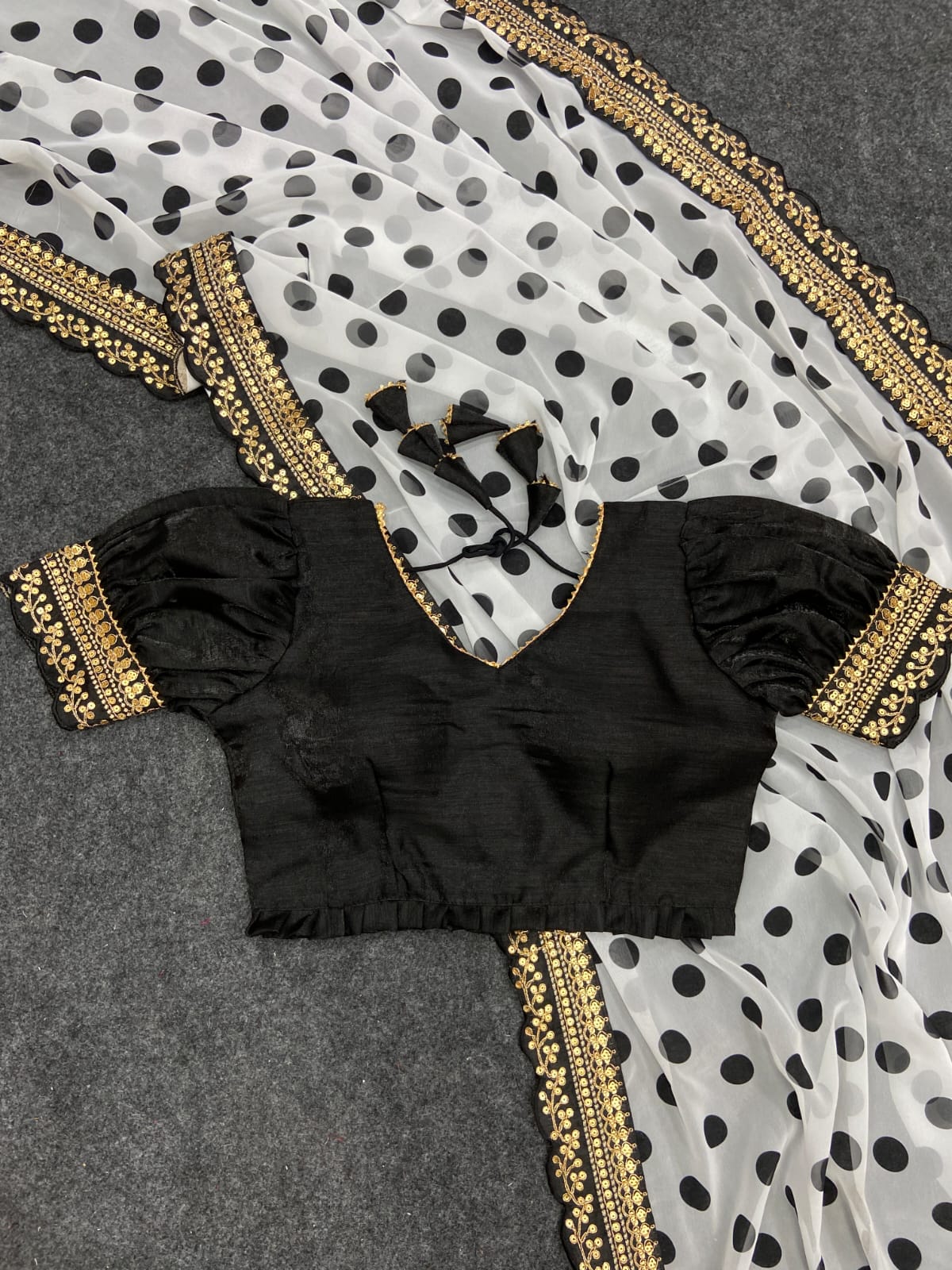▪︎Digital print Soft Georgette inspired saree with cording zari and Sequins-work Lace.