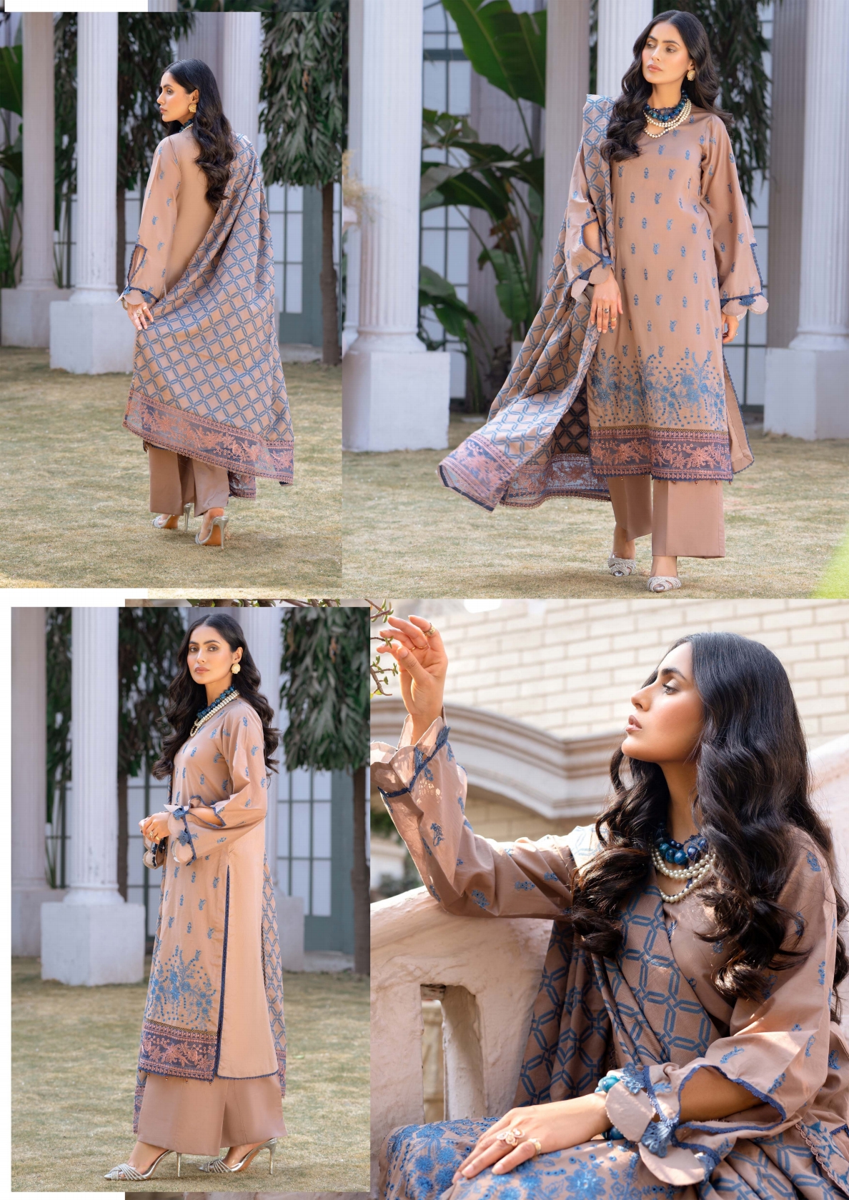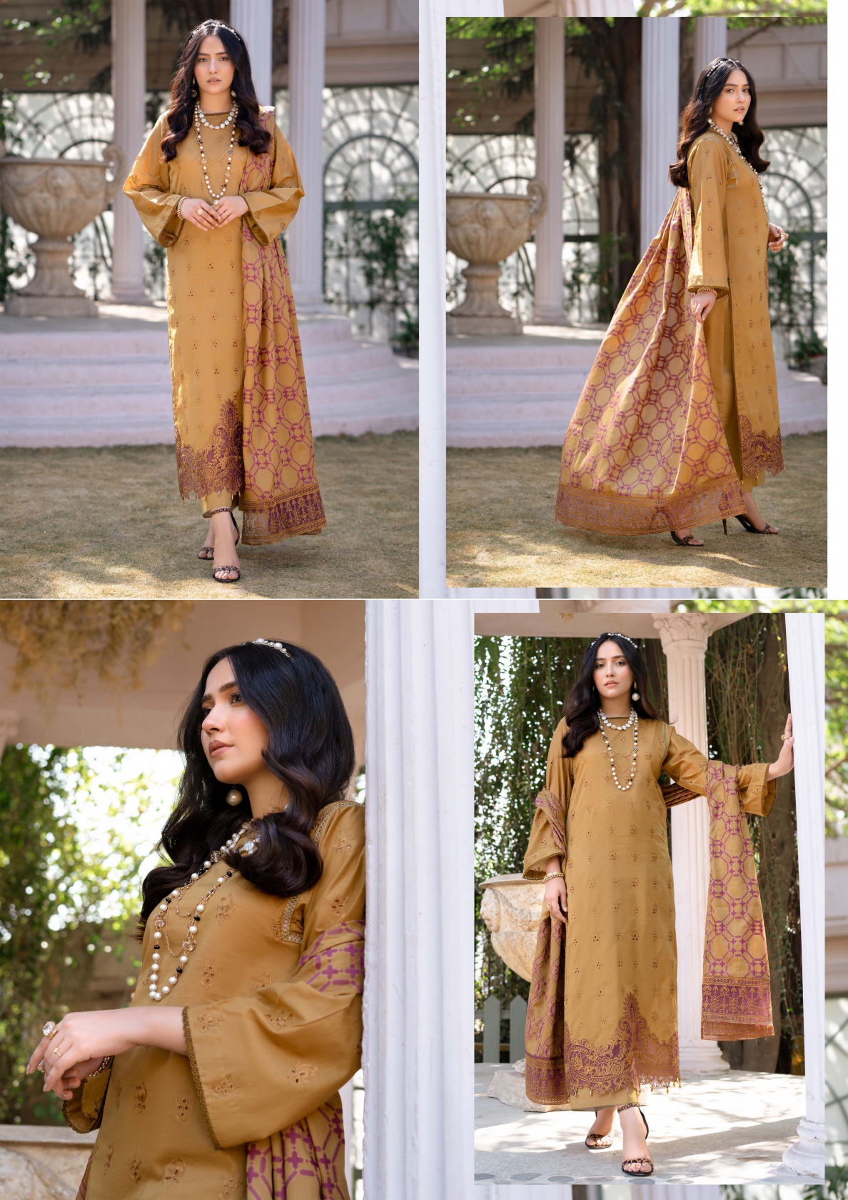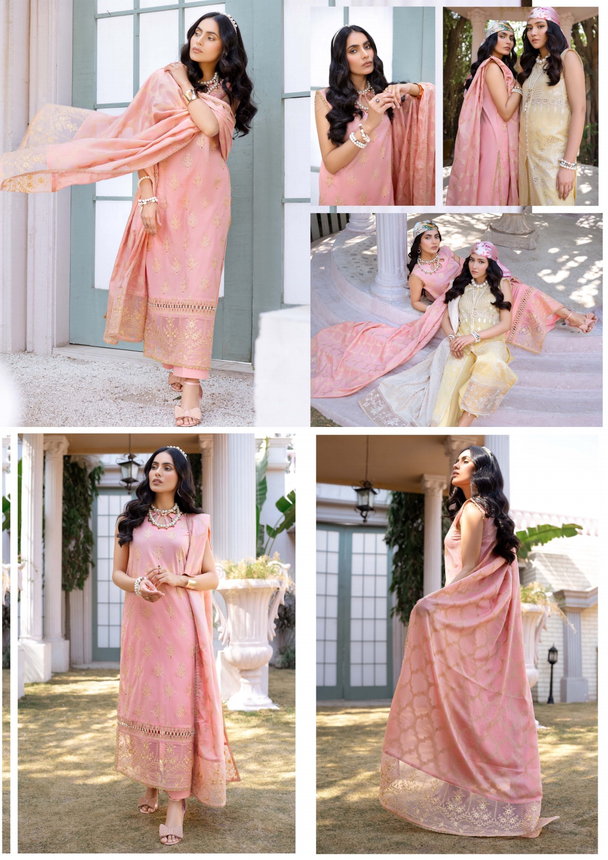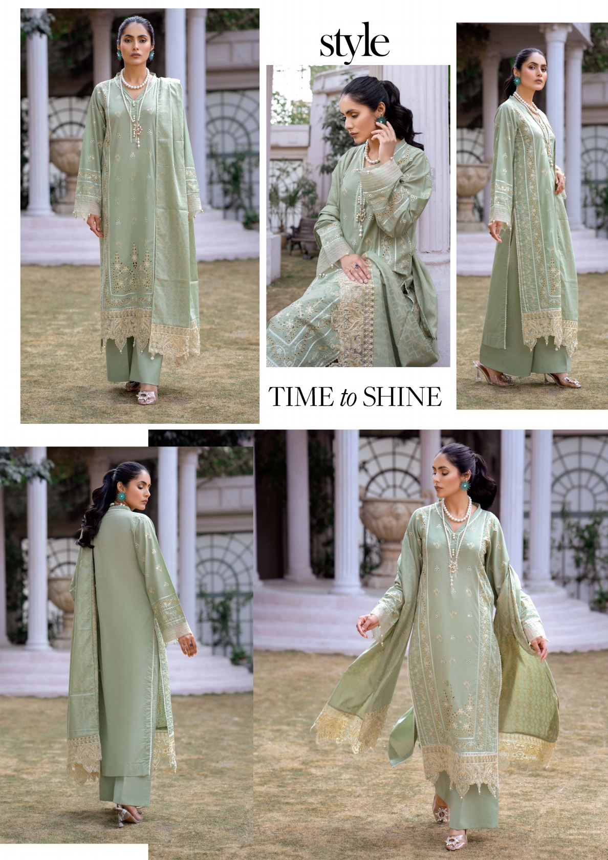 EMBROIDERED LAWN CHICKENKARI SHIRT WITH COTTON NET JACQUARD DUPATTA WITH PALLU EMBROIDERY AND PLAIN COTTON TROUSER
