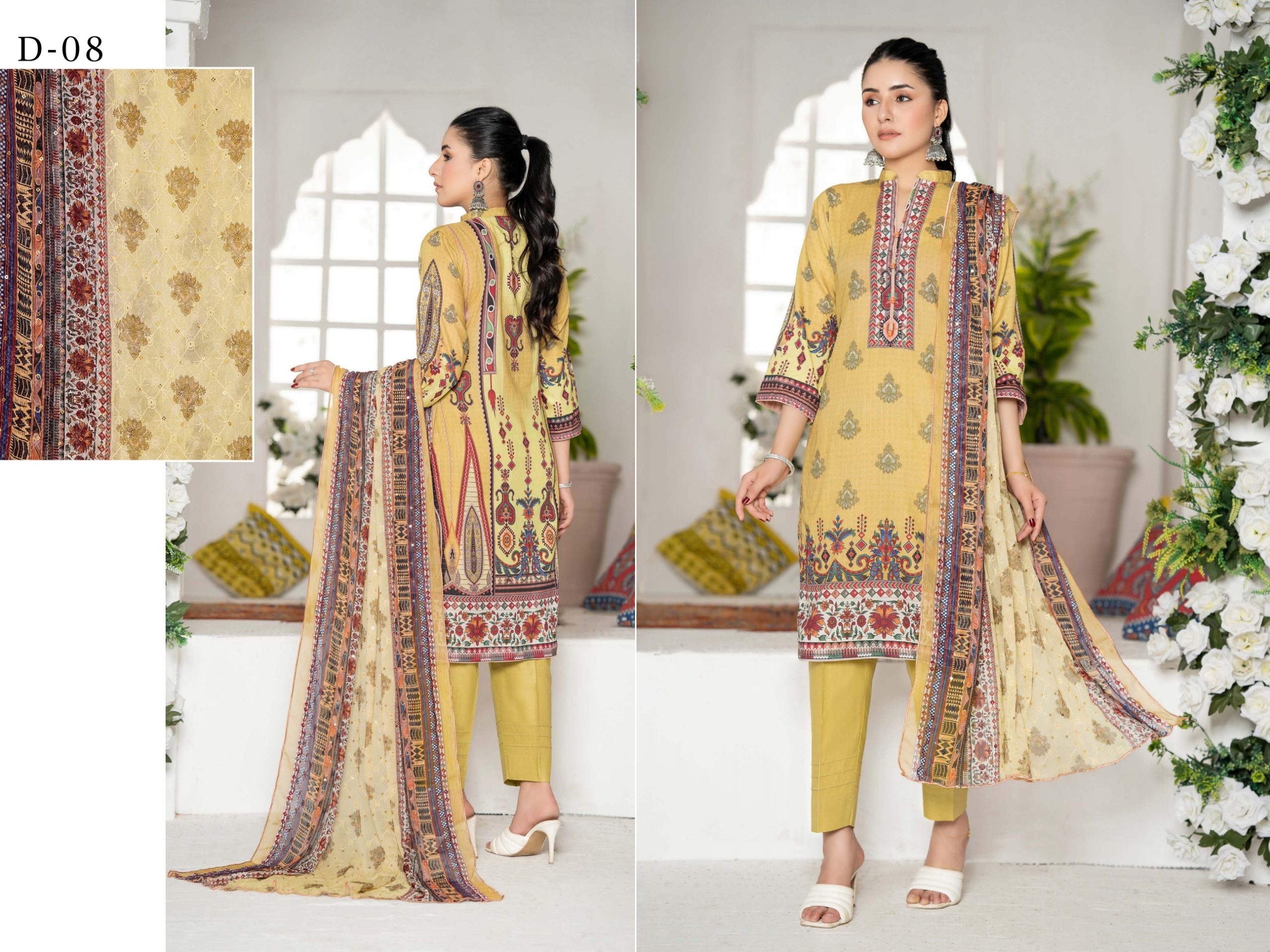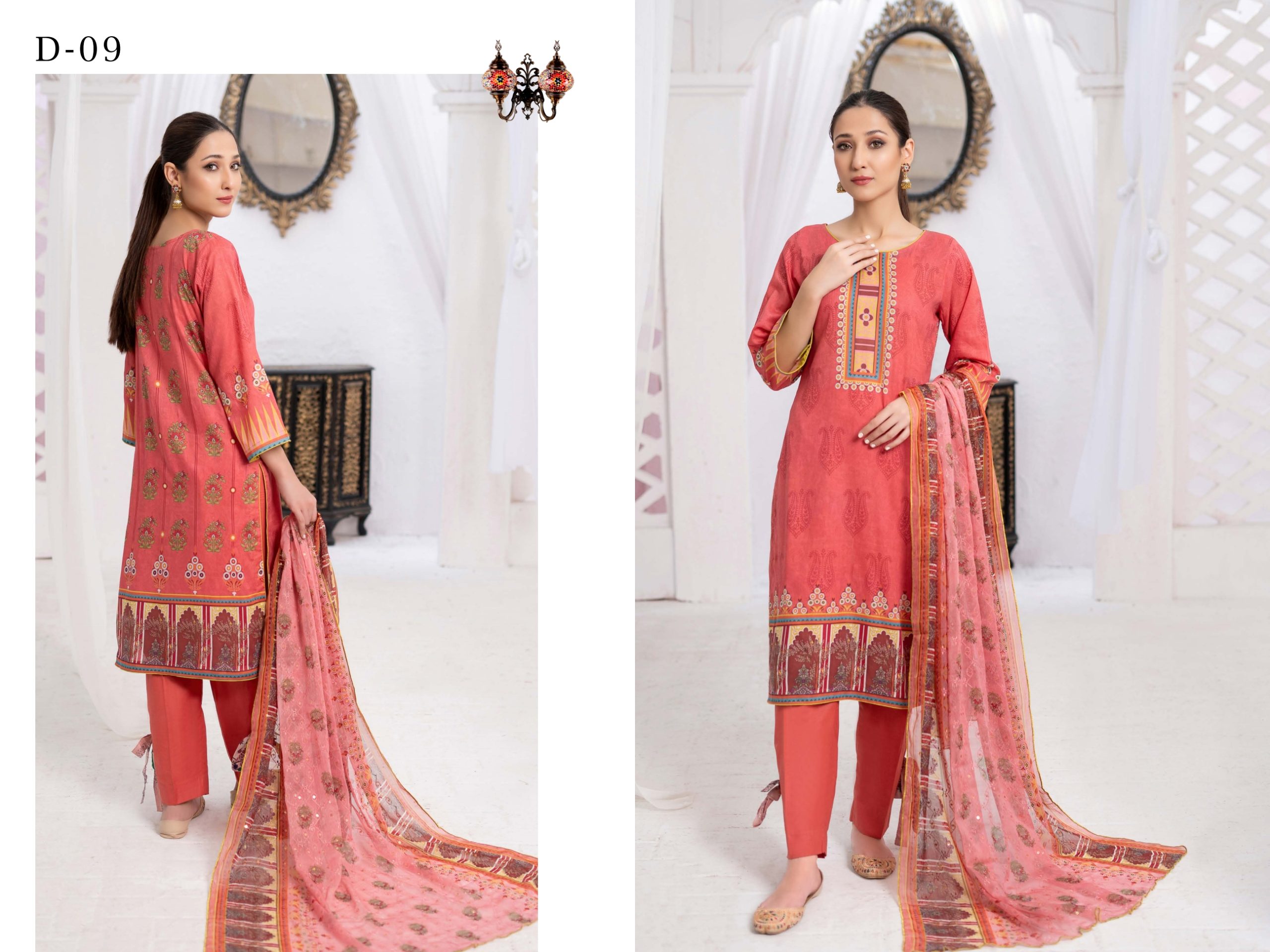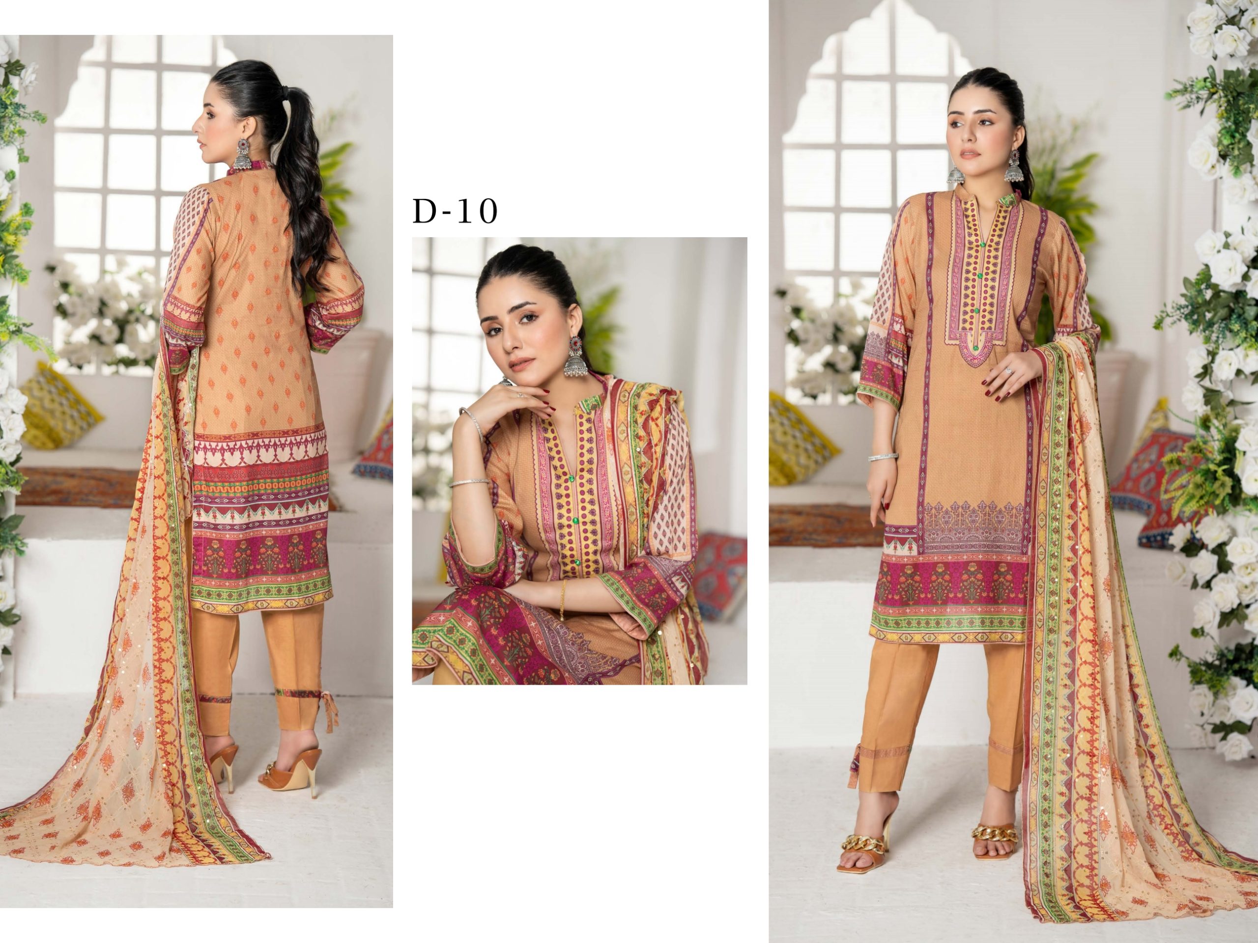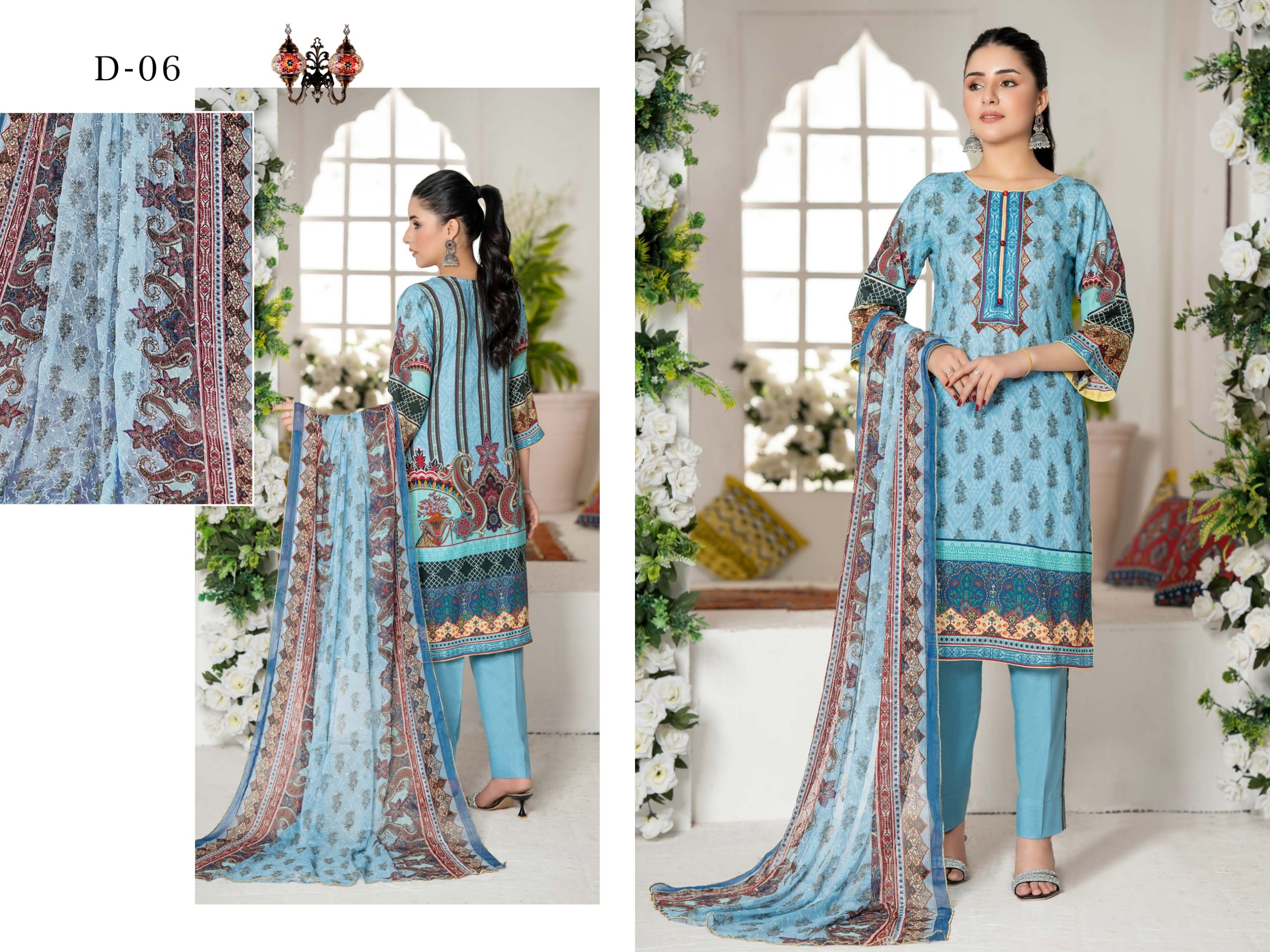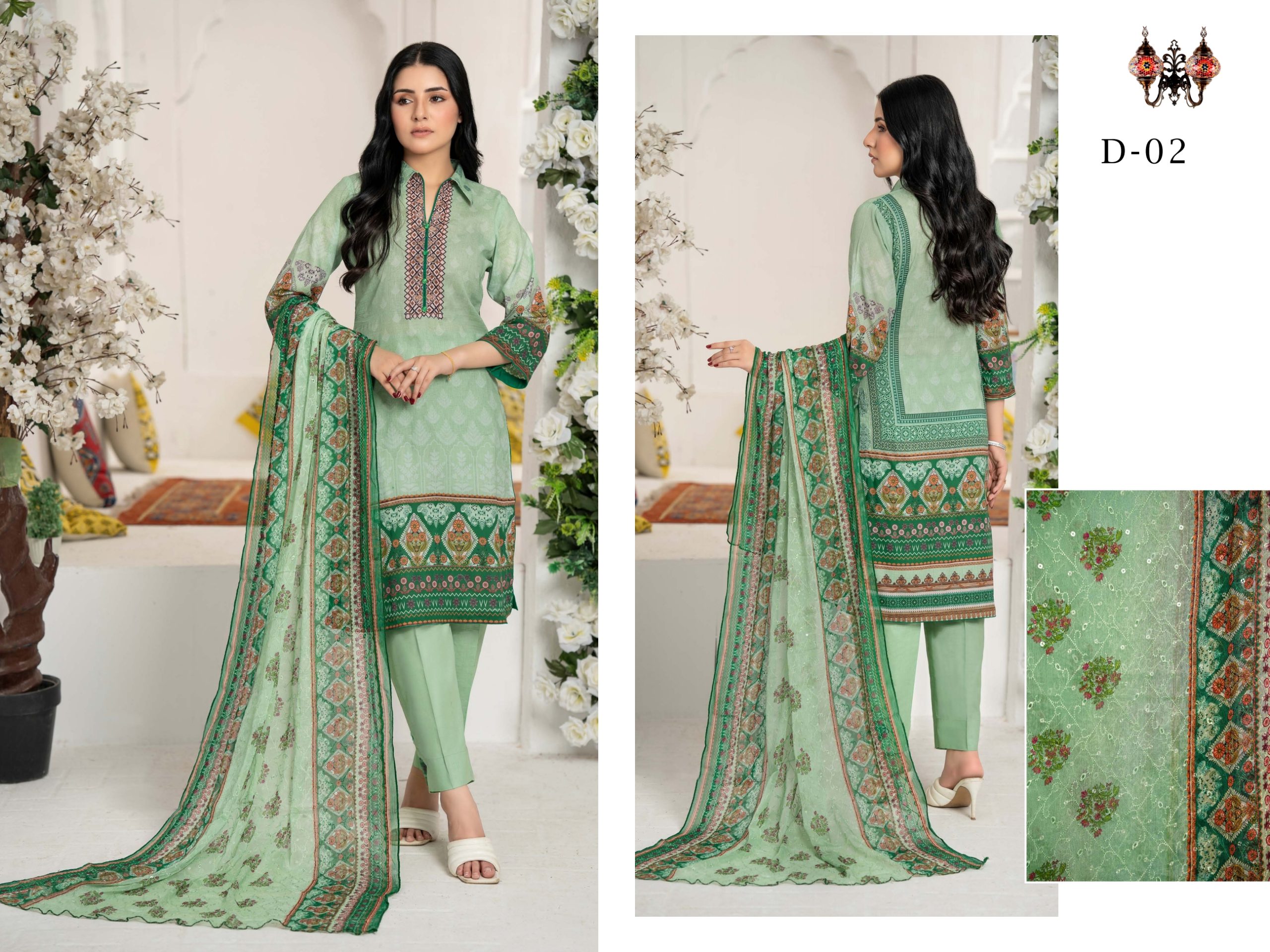 Digital Printed Airjet Lawn Shirts, with *Digital Printed Chikankari Sequence Embroidered Dupattas* & Dyed Trousers.