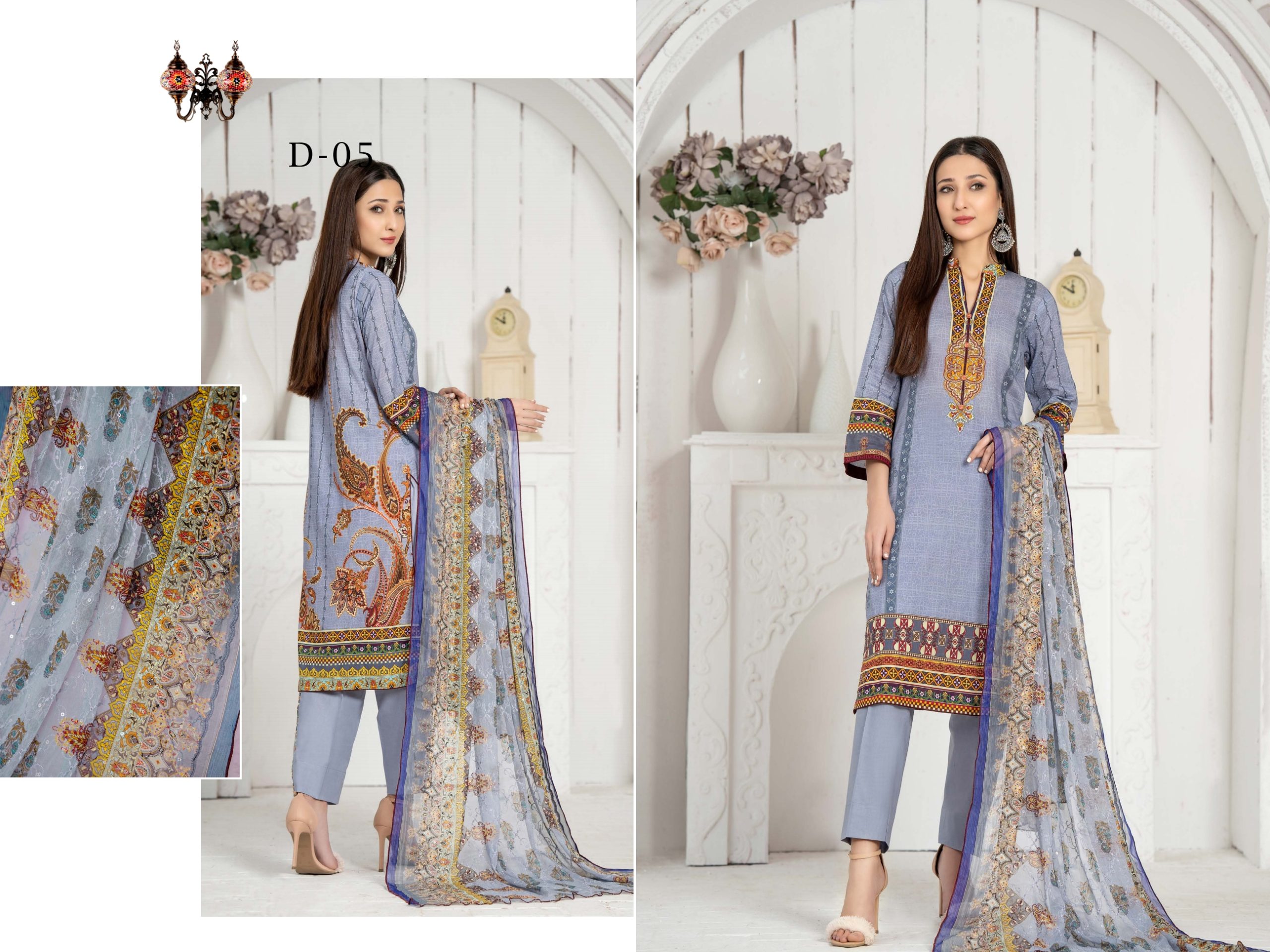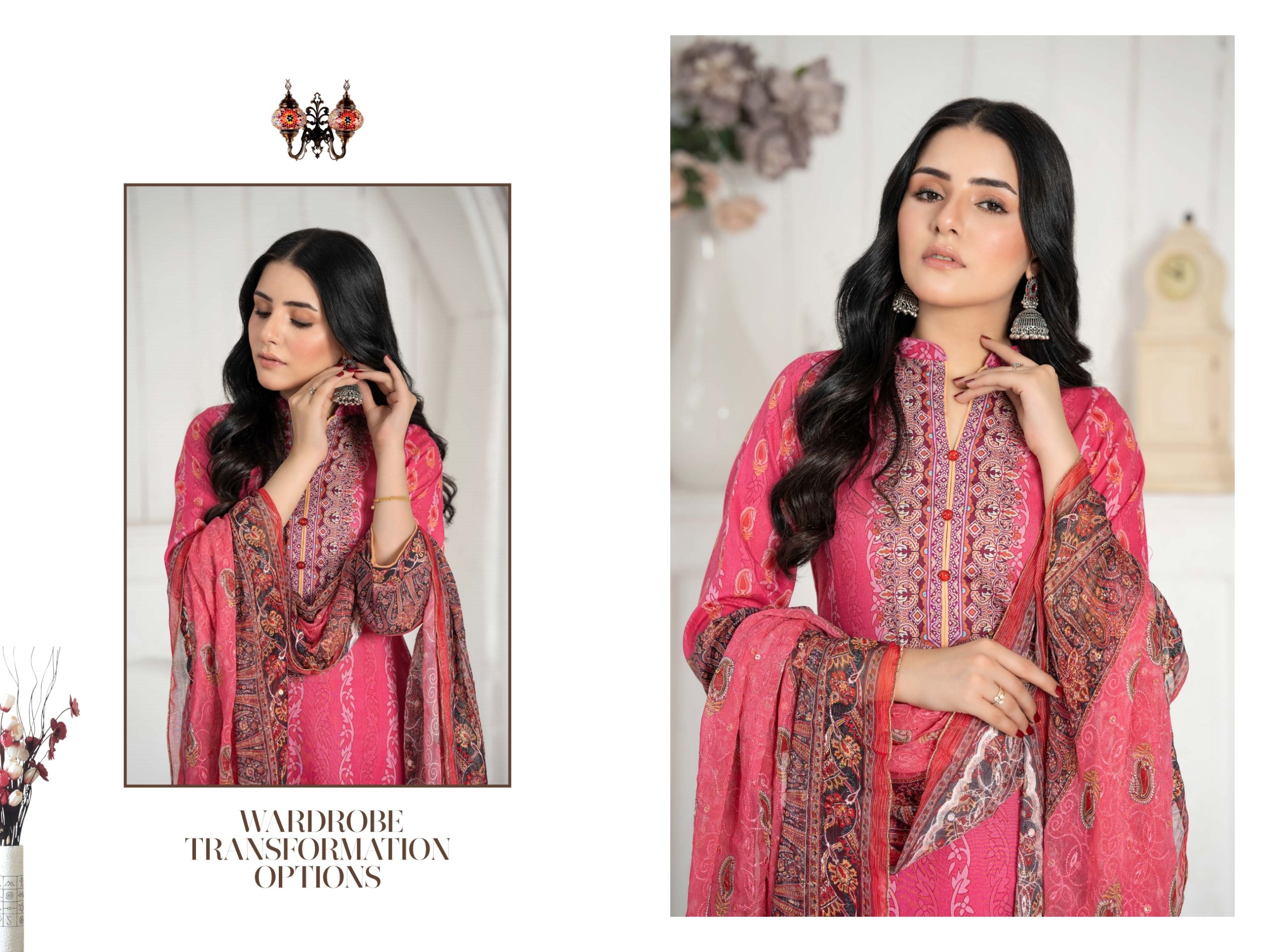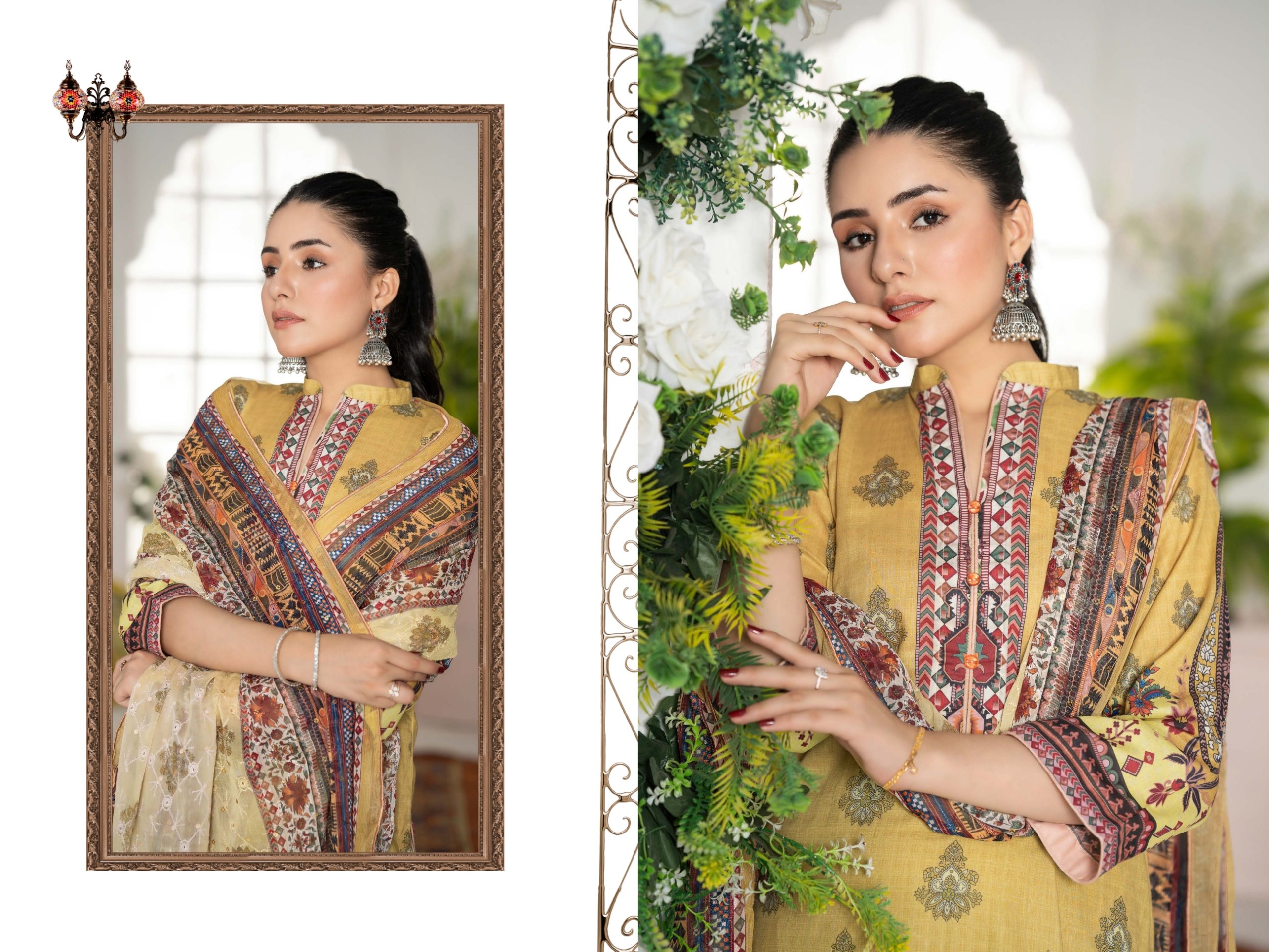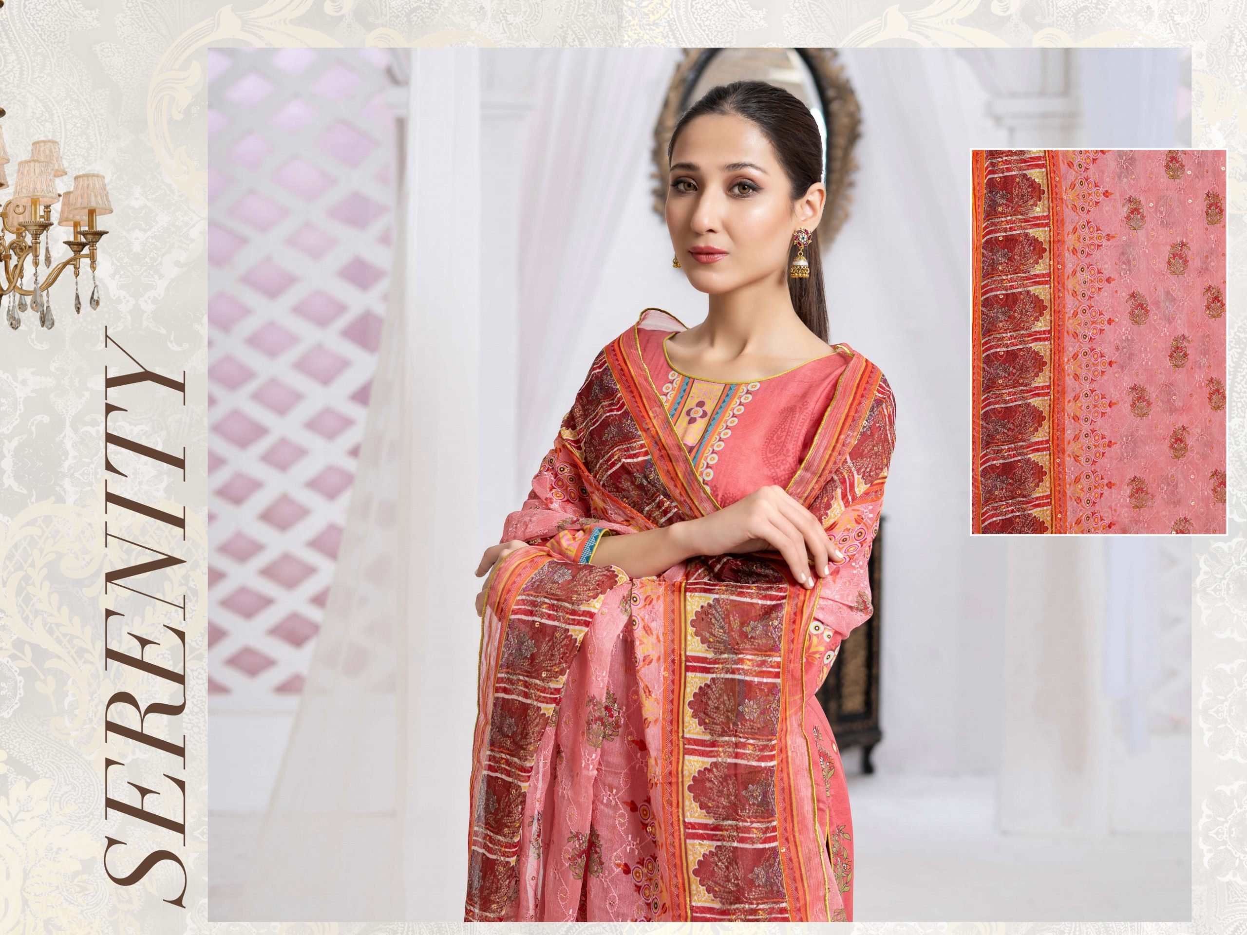 Digital Printed Airjet Lawn Shirts, with *Digital Printed Chikankari Sequence Embroidered Dupattas* & Dyed Trousers.