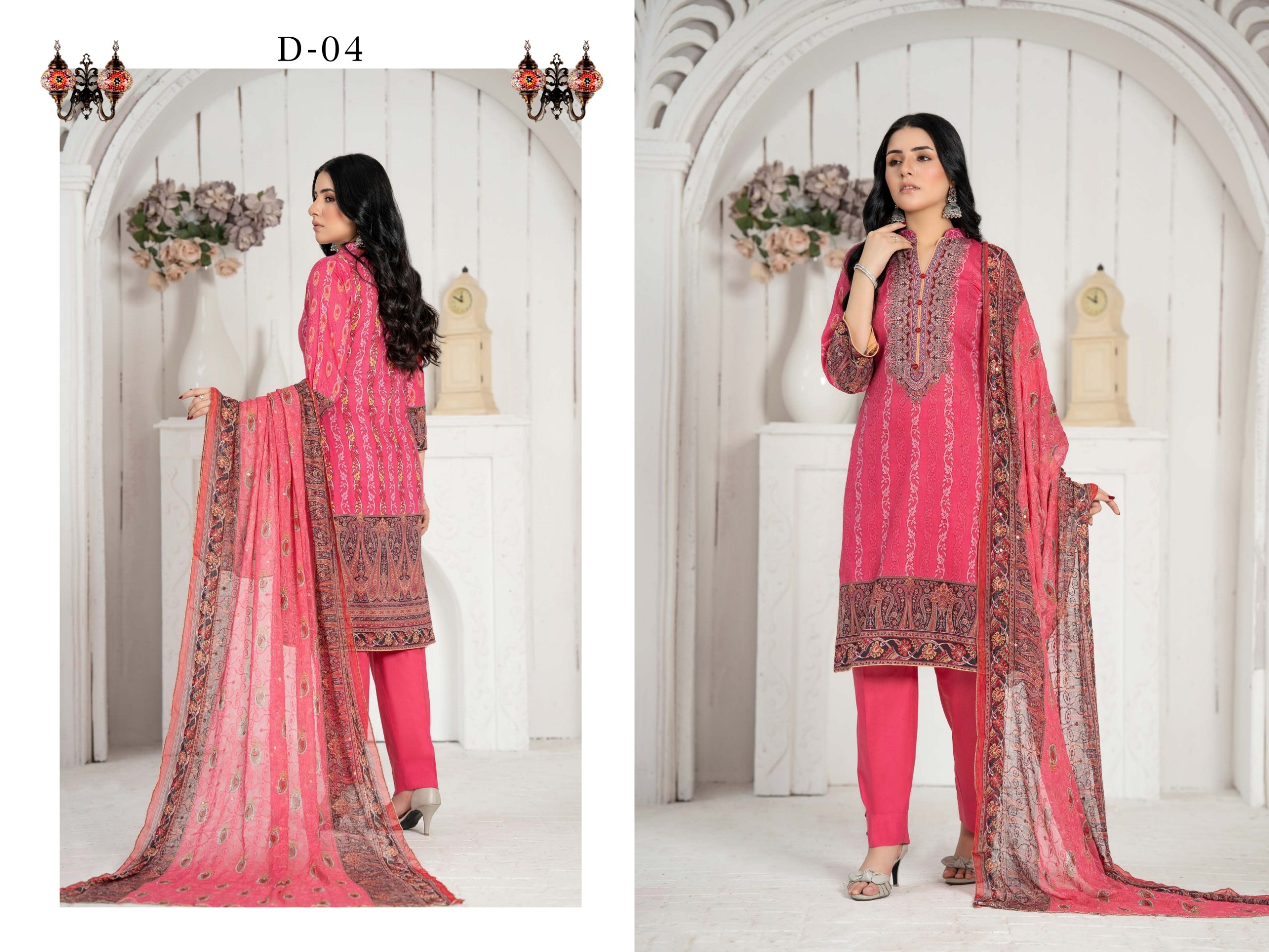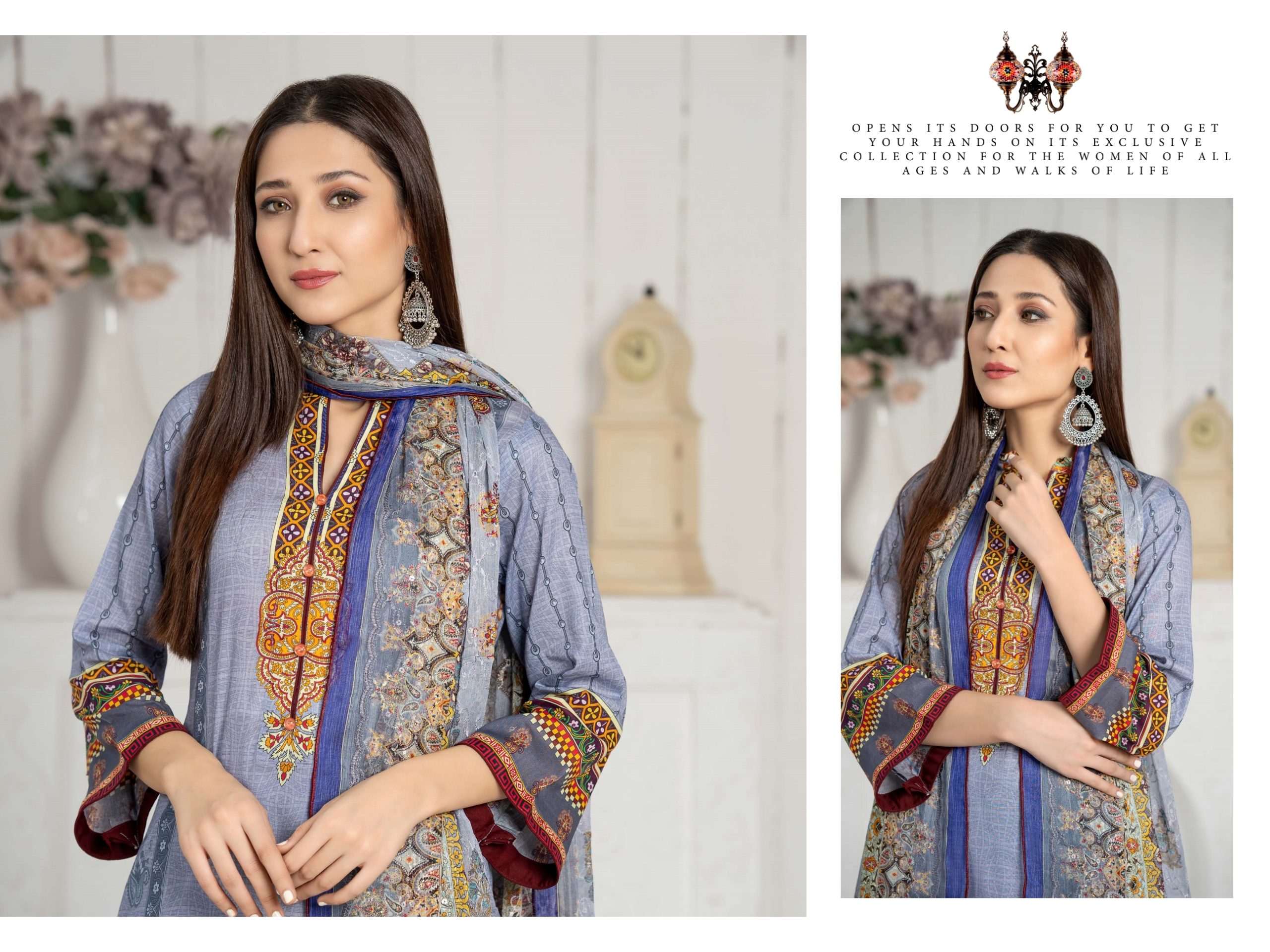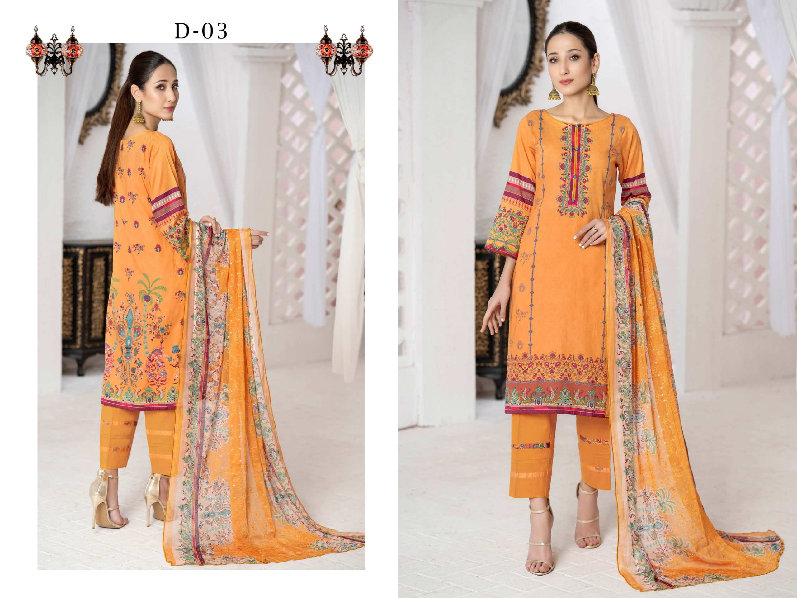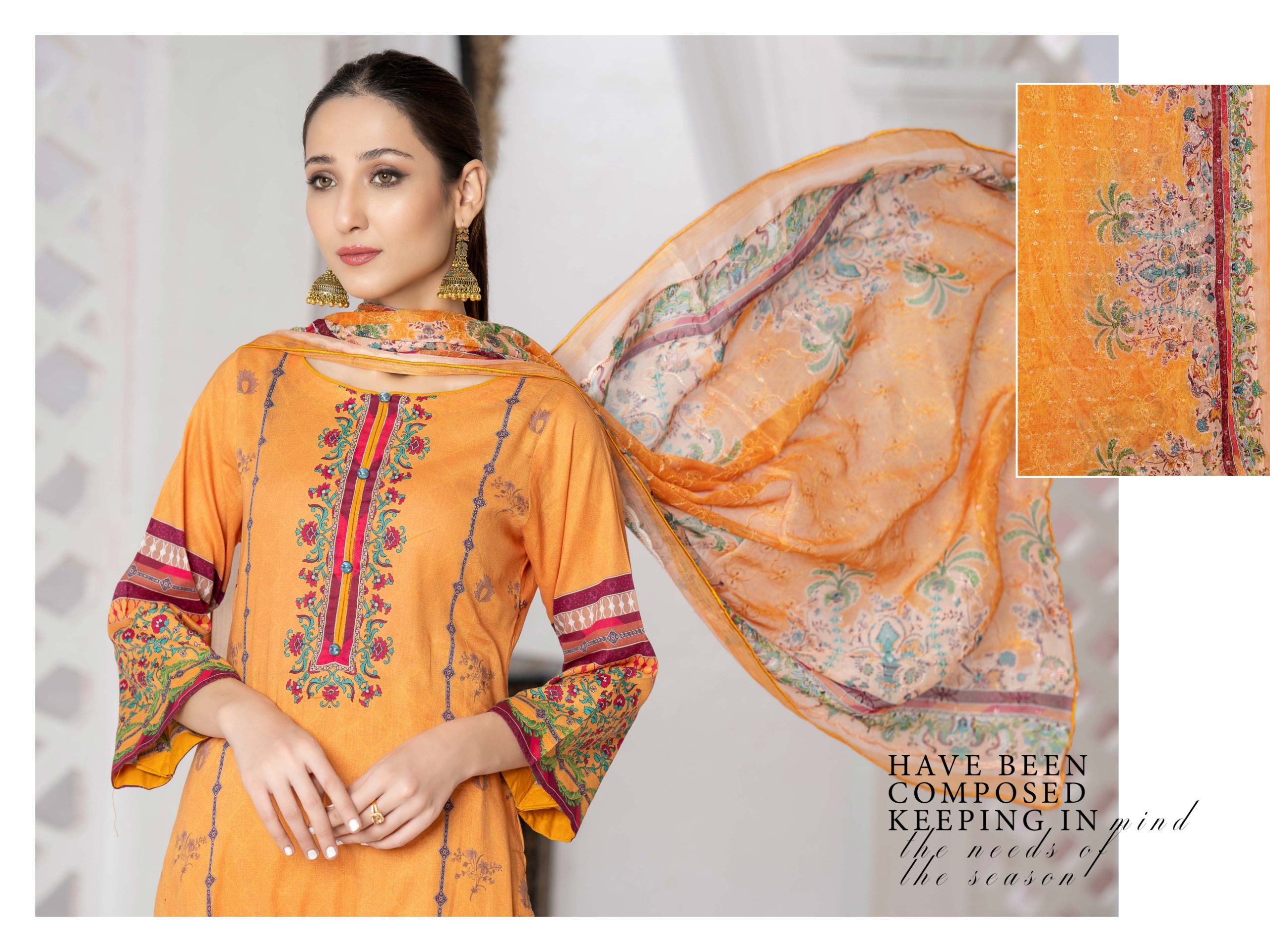 Digital Printed Airjet Lawn Shirts, with *Digital Printed Chikankari Sequence Embroidered Dupattas* & Dyed Trousers.