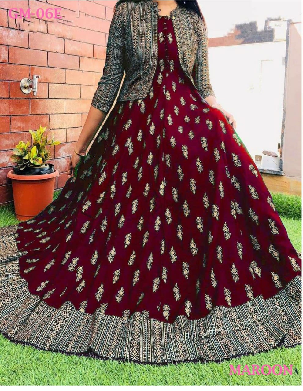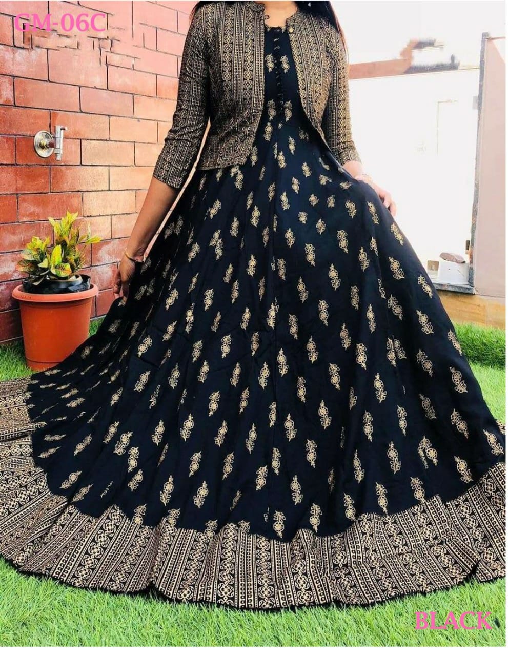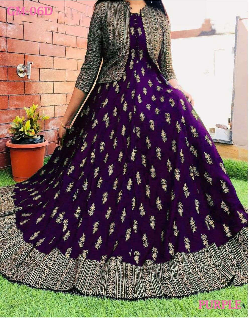 *Work Gold Foil Print With Full Stitched Readymade Kurti+Koti