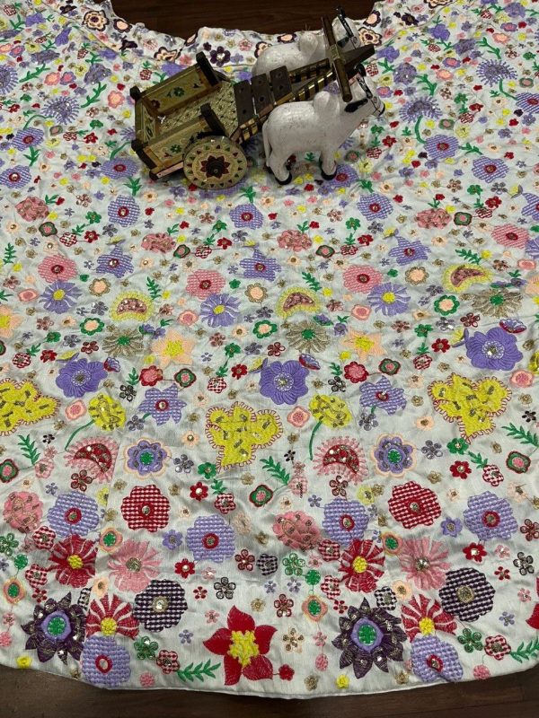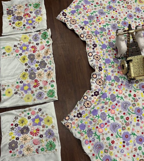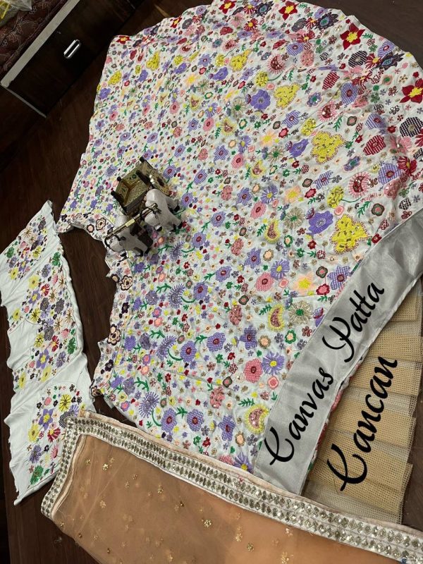 👉*Lehenga work-9 Color Thread work Sequins Embroidered Work With Cancan & Canvas Patta*