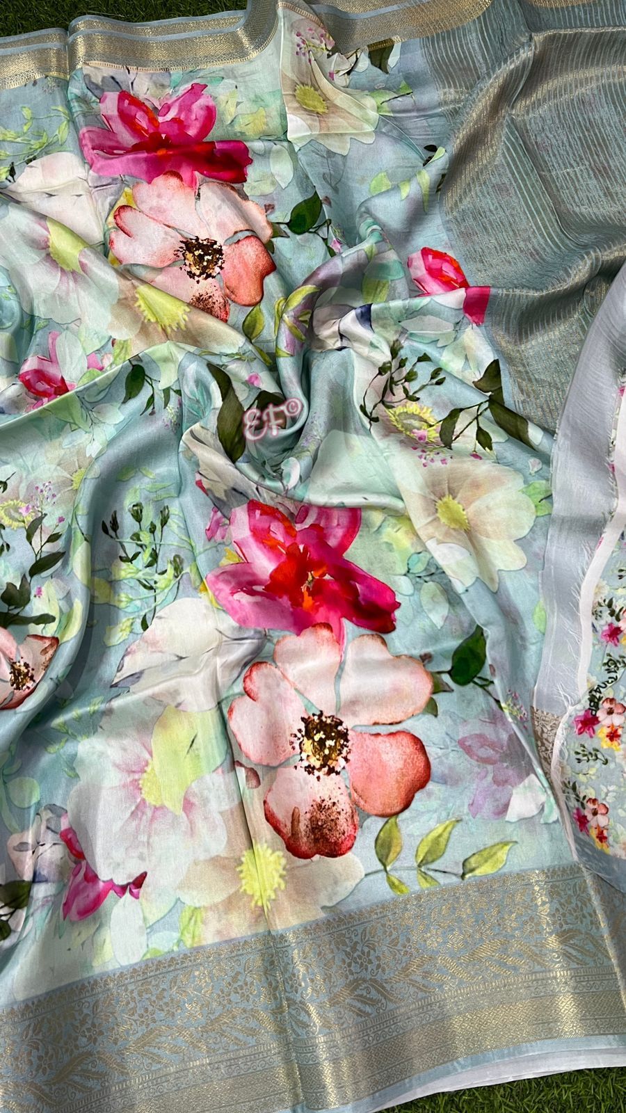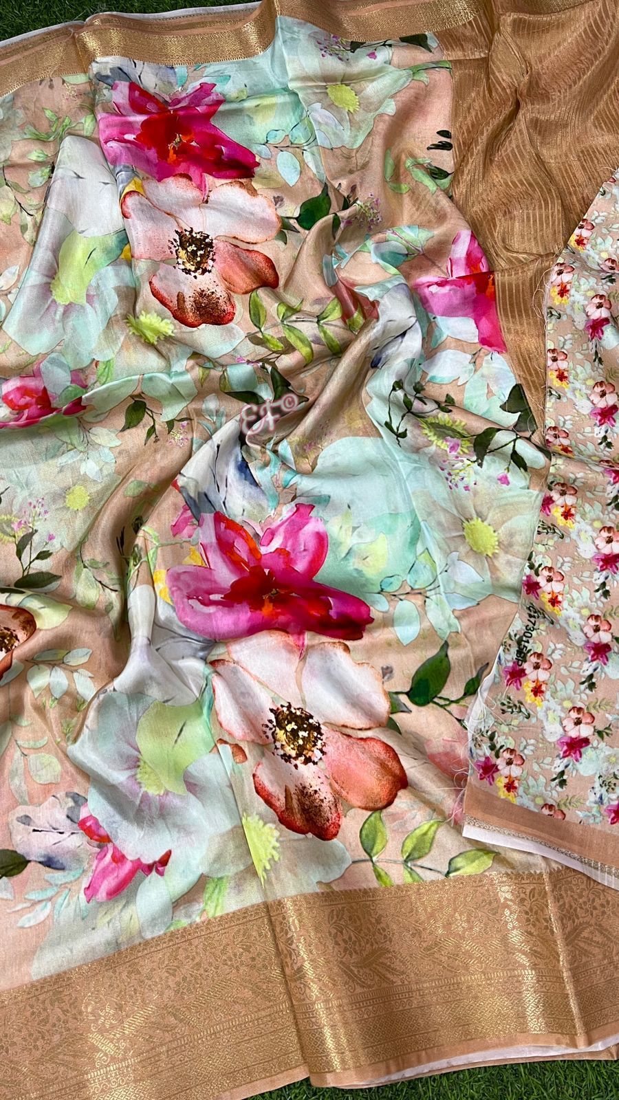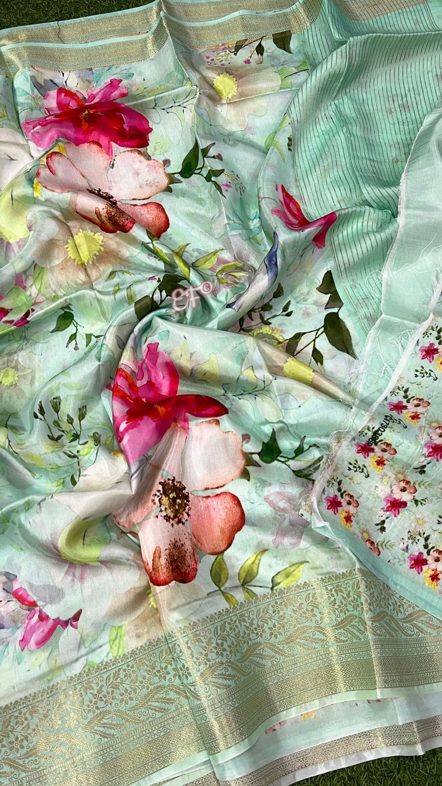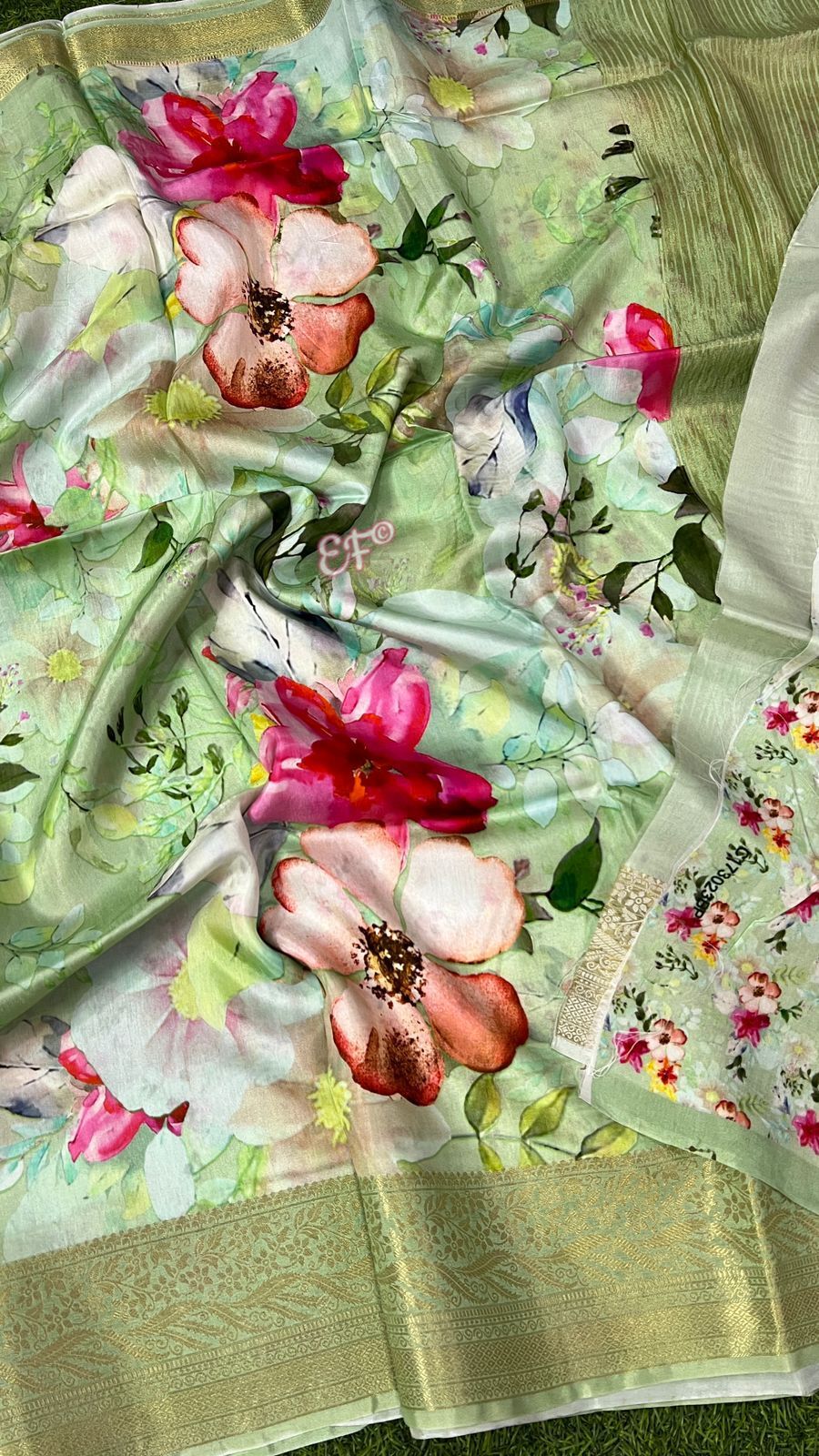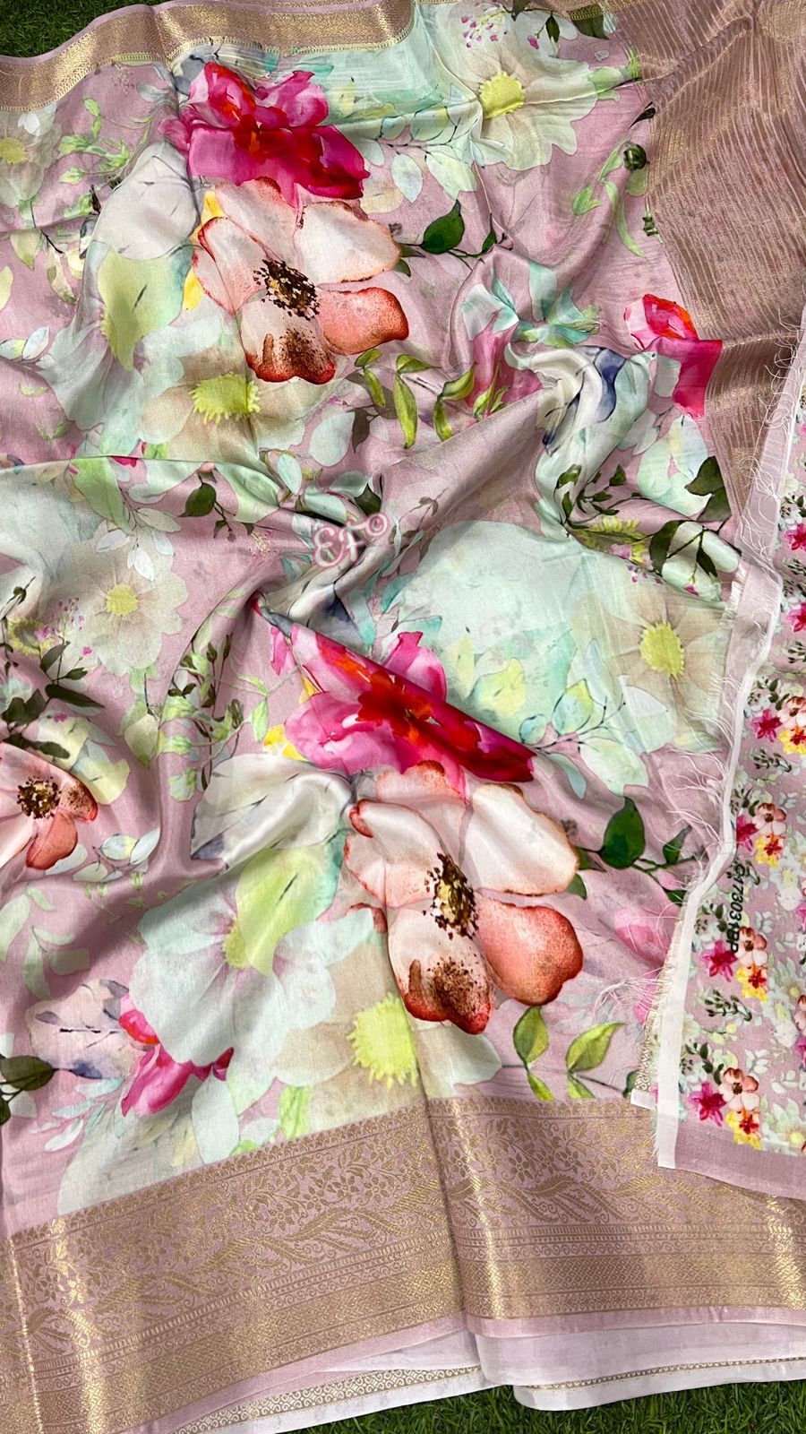 🌼Beautiful Pastal Shaded Mysore Kaatan Crape Silk Sarees With Floral Digital Prints and Crushed pallu With Printed blouse🌼