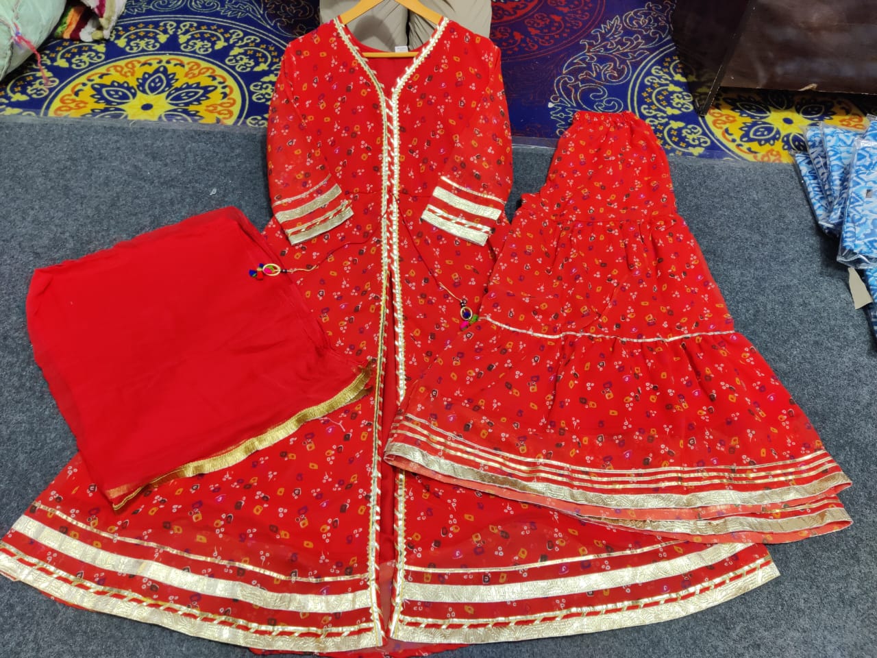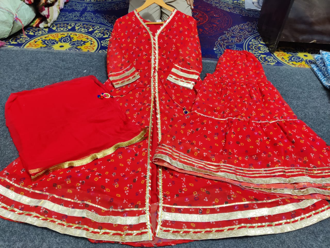 *The set is complete with a beautiful chiffon dupatta in a bright shade of red bordered with bijia to add that extra bling to your outfit* .