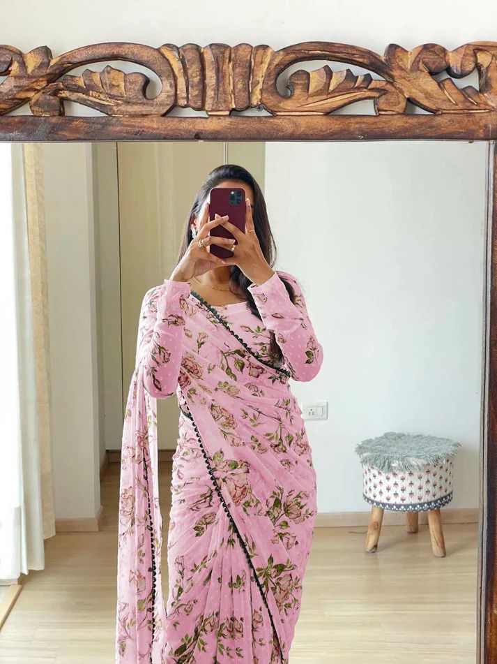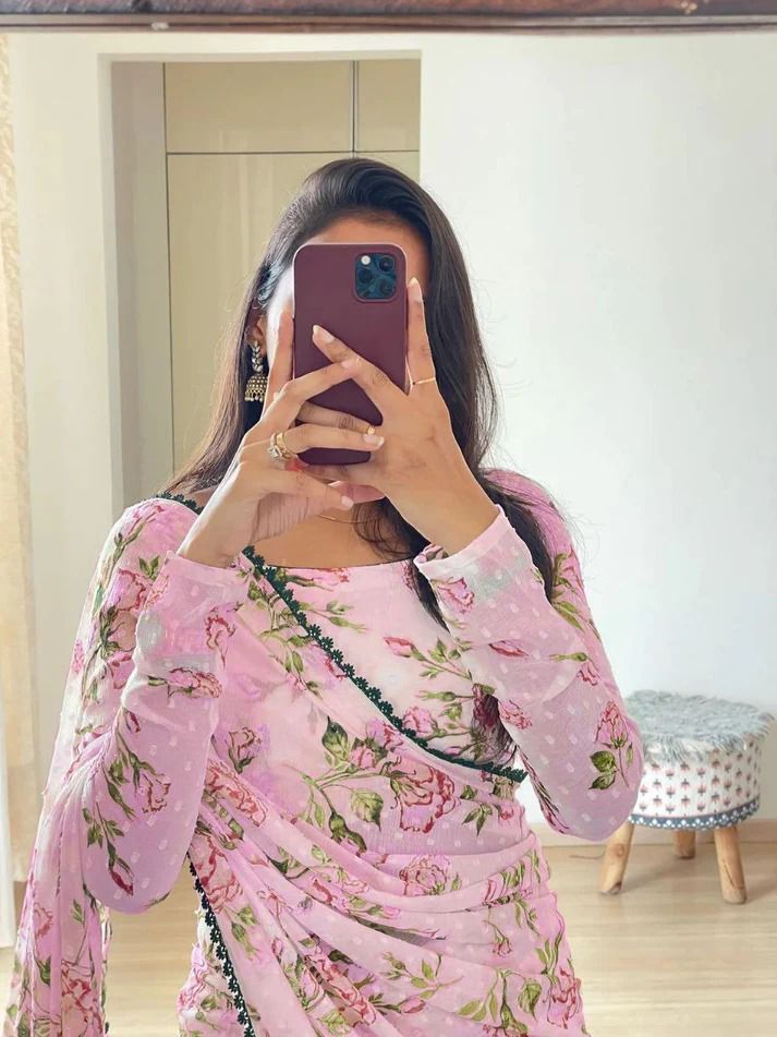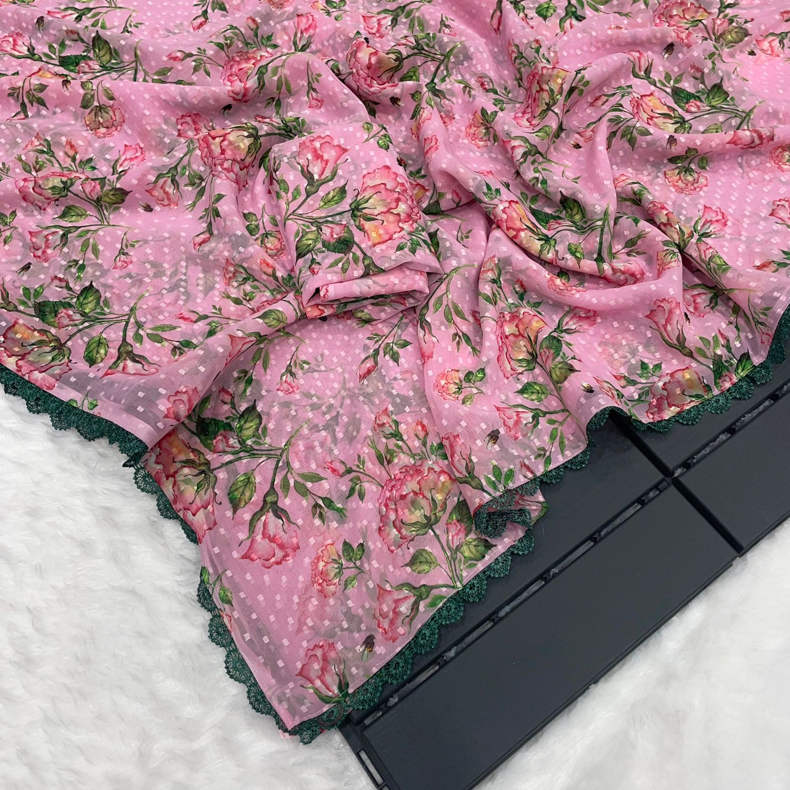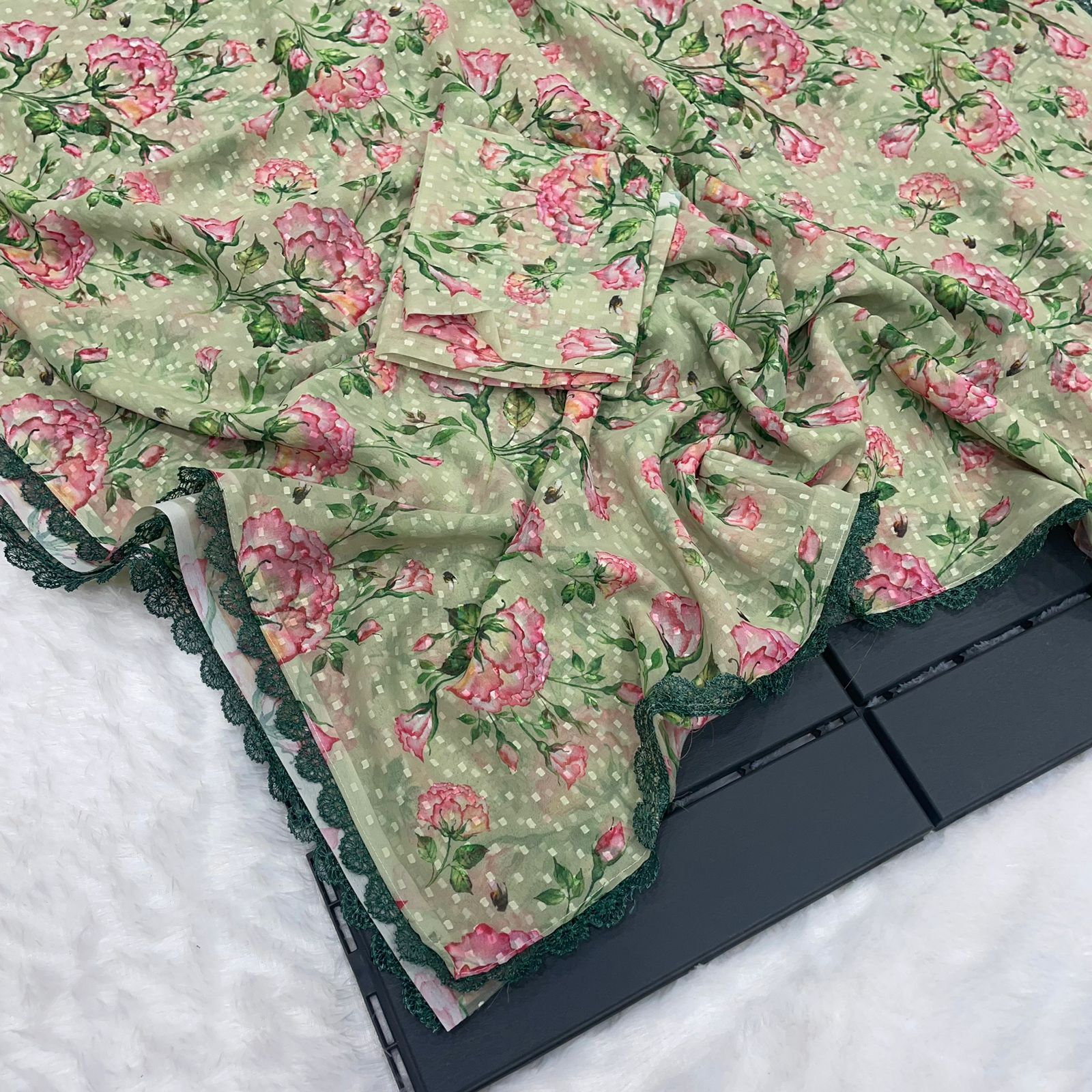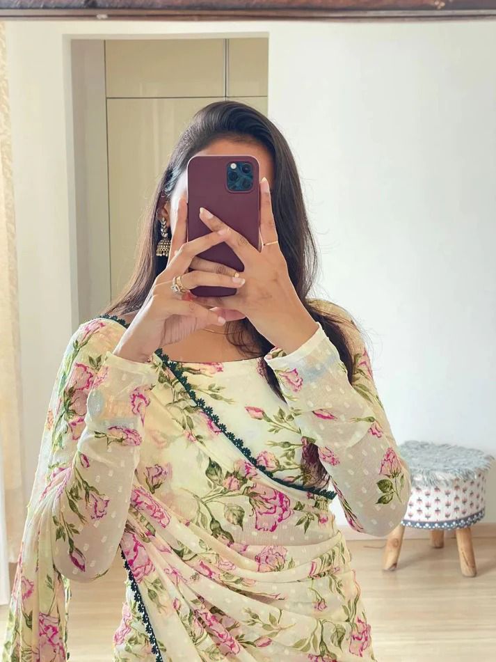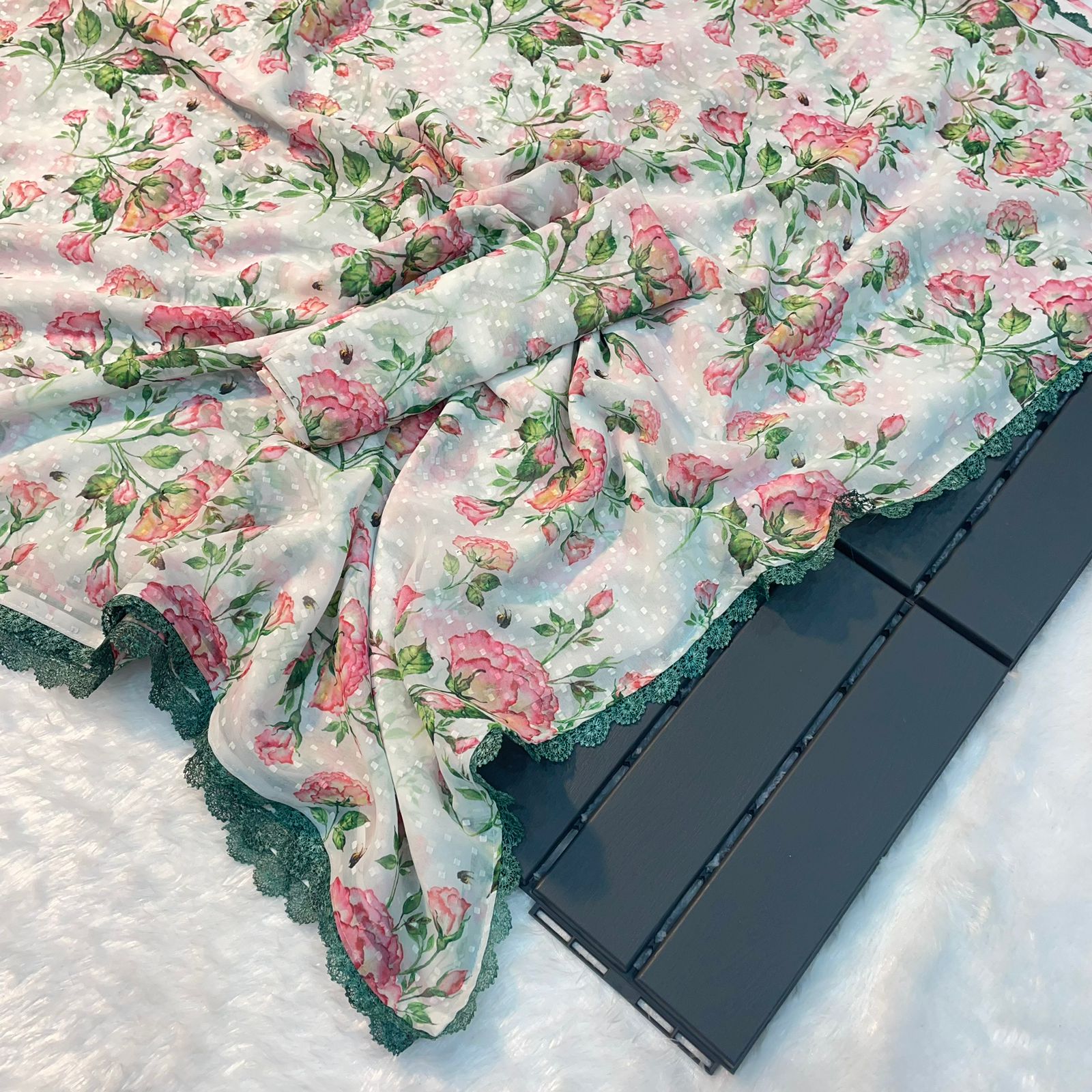 ▶️Fabric Detail :- Soft Georgette saree with self weaving and all over digital print on saree
