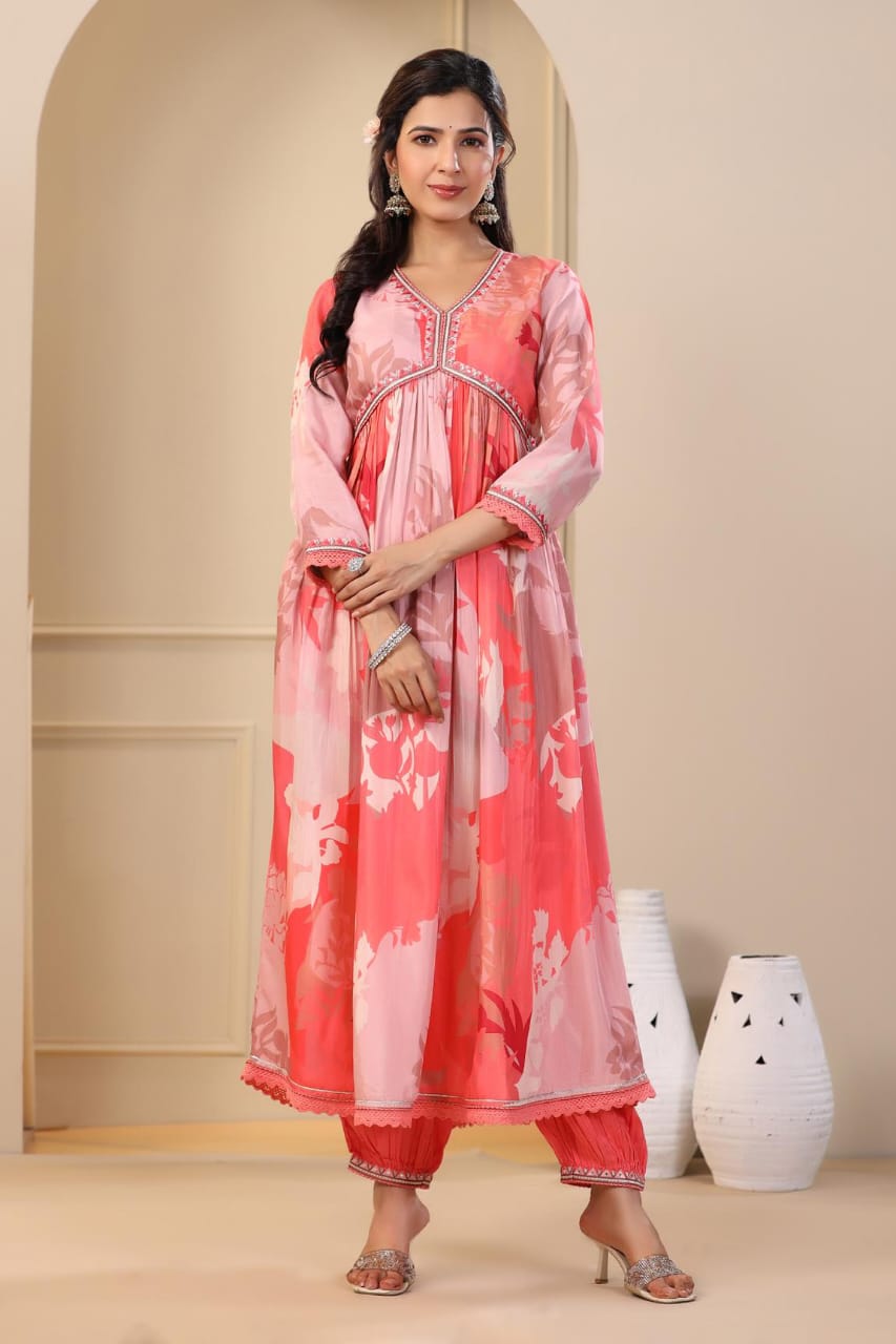 *Featuring beautiful MUSLIN ALIA CUT Suit Set which is beautifully decorated with intricate hand embroidery, Zari weaving and prints. It is paired with matching pants and lace dupatta.*