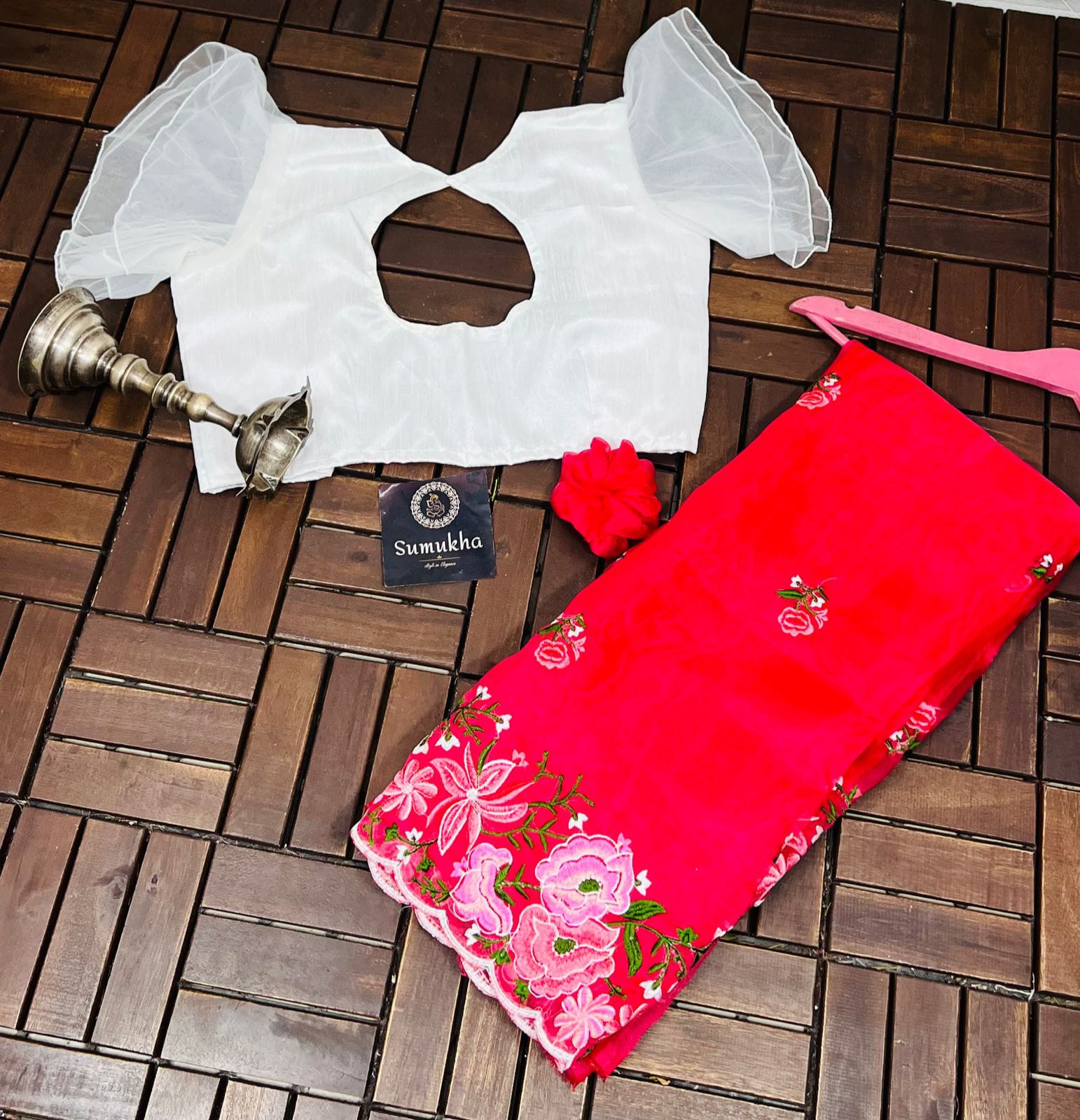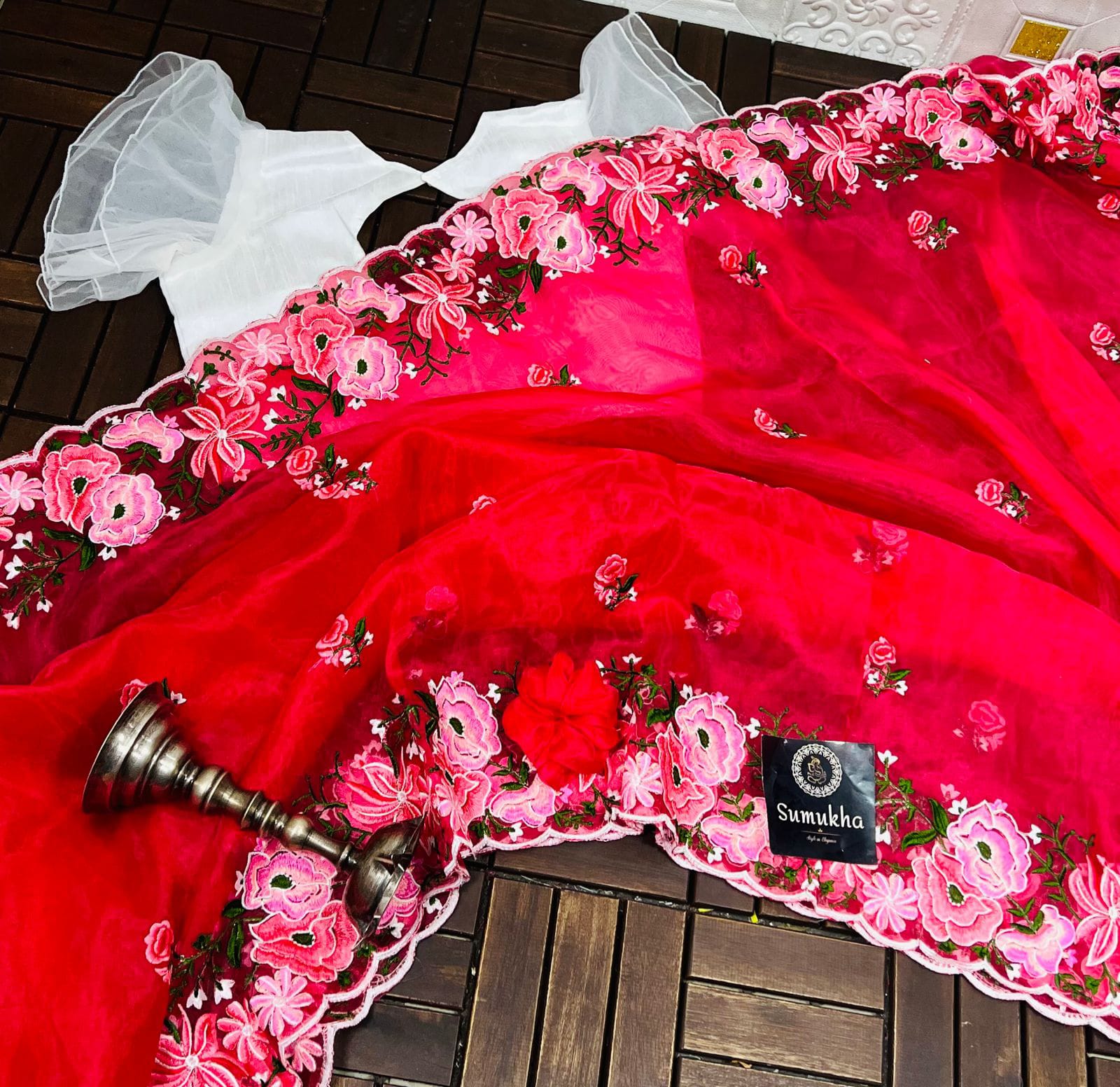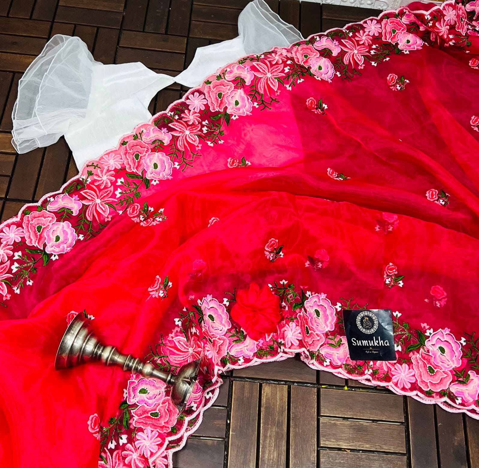ππ Pure and very soft Lite weight organza premium qulity sarees with all over thread work flowers.