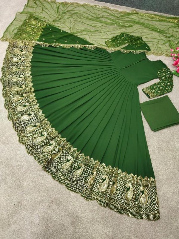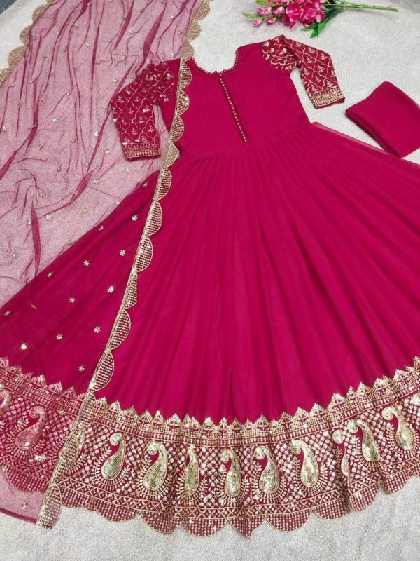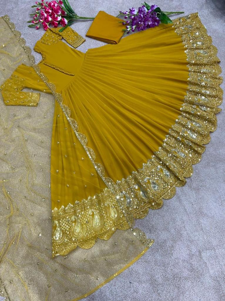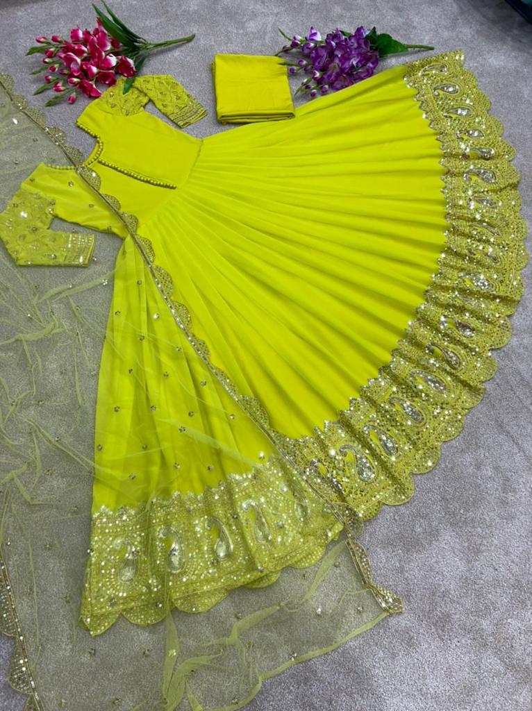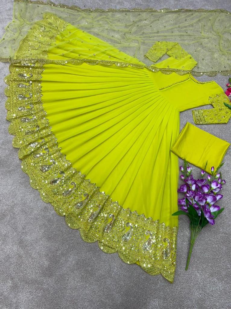 ๐ *Gown Fabric * :Faux Georgette With *Embroidery And 5mm Sequence Work*