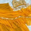 *LAHENGA SAREE FABRICS* : GEORGETTE FABRIC WITH LAYER RUFFLE WORK AND ATTACHED DUPPATA
