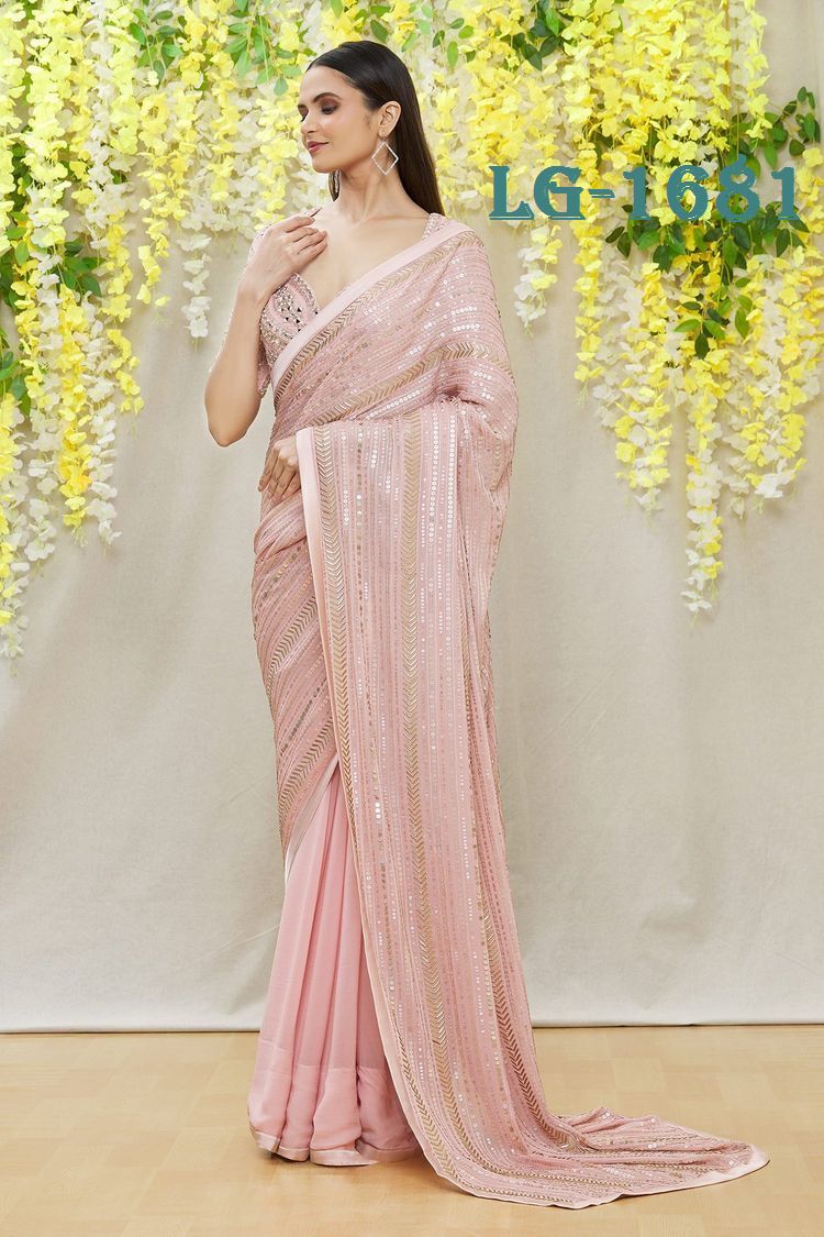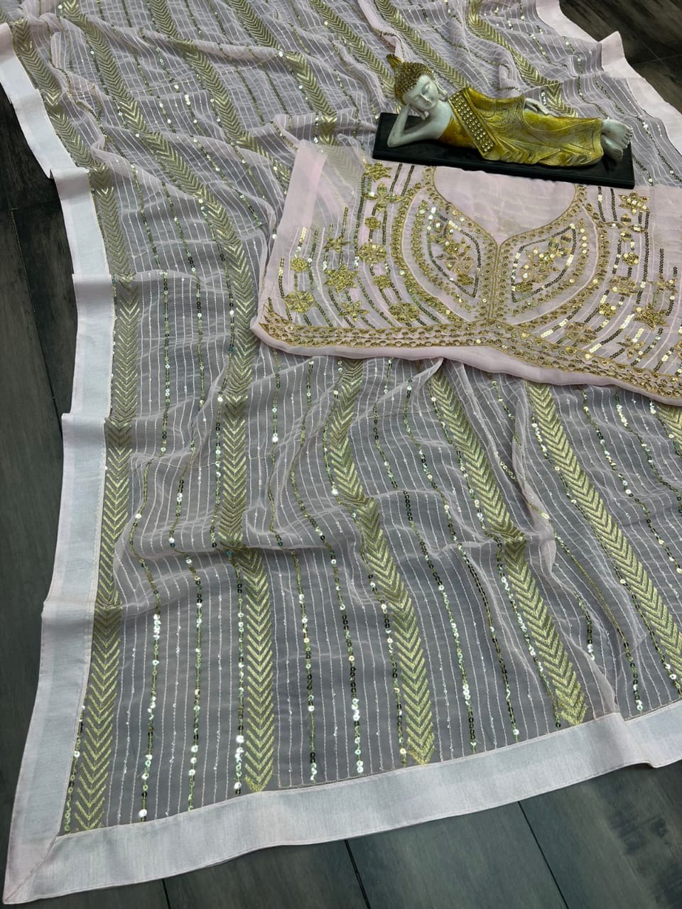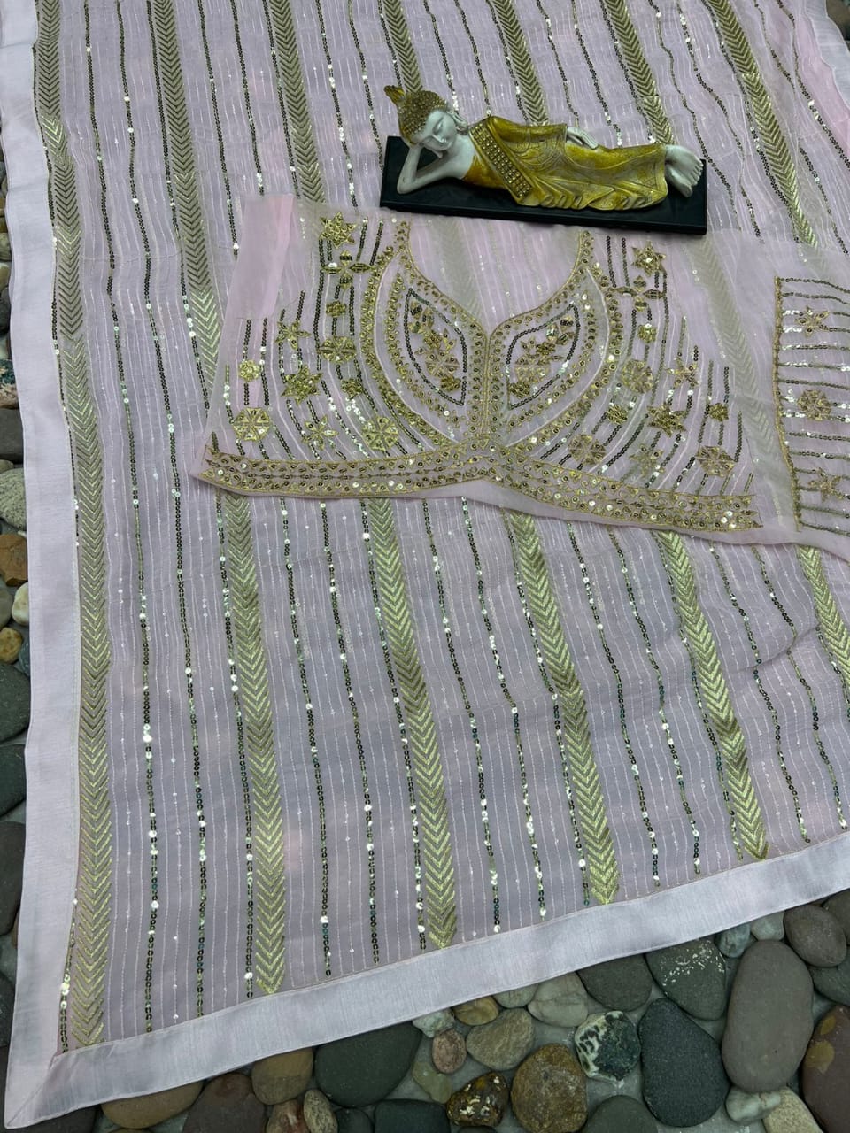 *SAREE* : GEORGETTE WITH *DOUBLE SEQUENCE EMBROIDERED WORK SAREE*