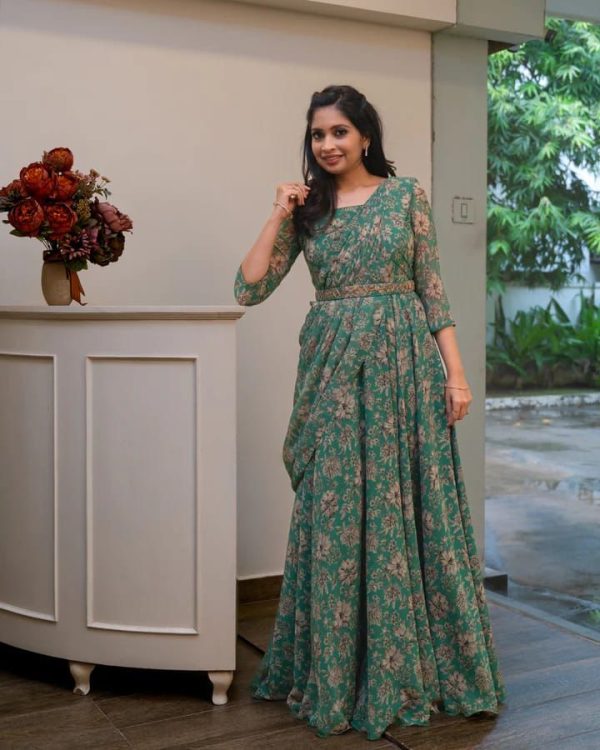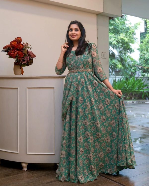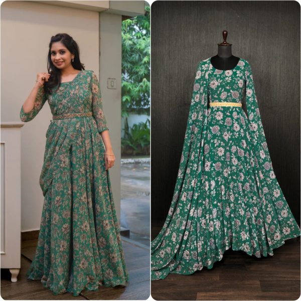 #Printcenter #floralgown #gown #printedgown #Georgettegown #style #dresslook #gowncollection #frock #greengown#readytowear #trendygown #toptrendgown #withbelt #fancybelt #gownstyle #yellowgown #goldBelt #Kumarigowns