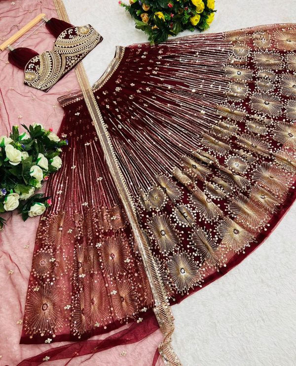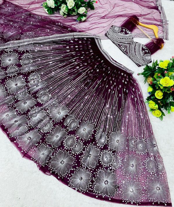 π*Lehenga Fabric *: Soft Butter Fly Net With Heavy 5mm Siqwans Embroidery Work WithΒ