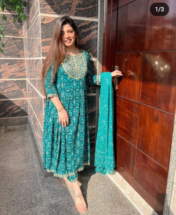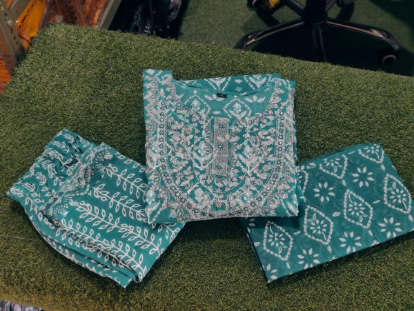 *PRINTED KURTA WITH MACHINE EMBROIDERED DETAILING ON BOTH KURTA AND PANTS . THIS OUTFIT WILL MAKE ALOT OF HEADS TURN ON YOU .*