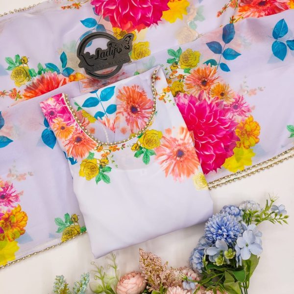 Classic Dress Are Delightful And This Easy To Wear And Stylish Floral Print Georgette Suit With Beautiful Pearl Lace Overall Is A Joyful Vibe